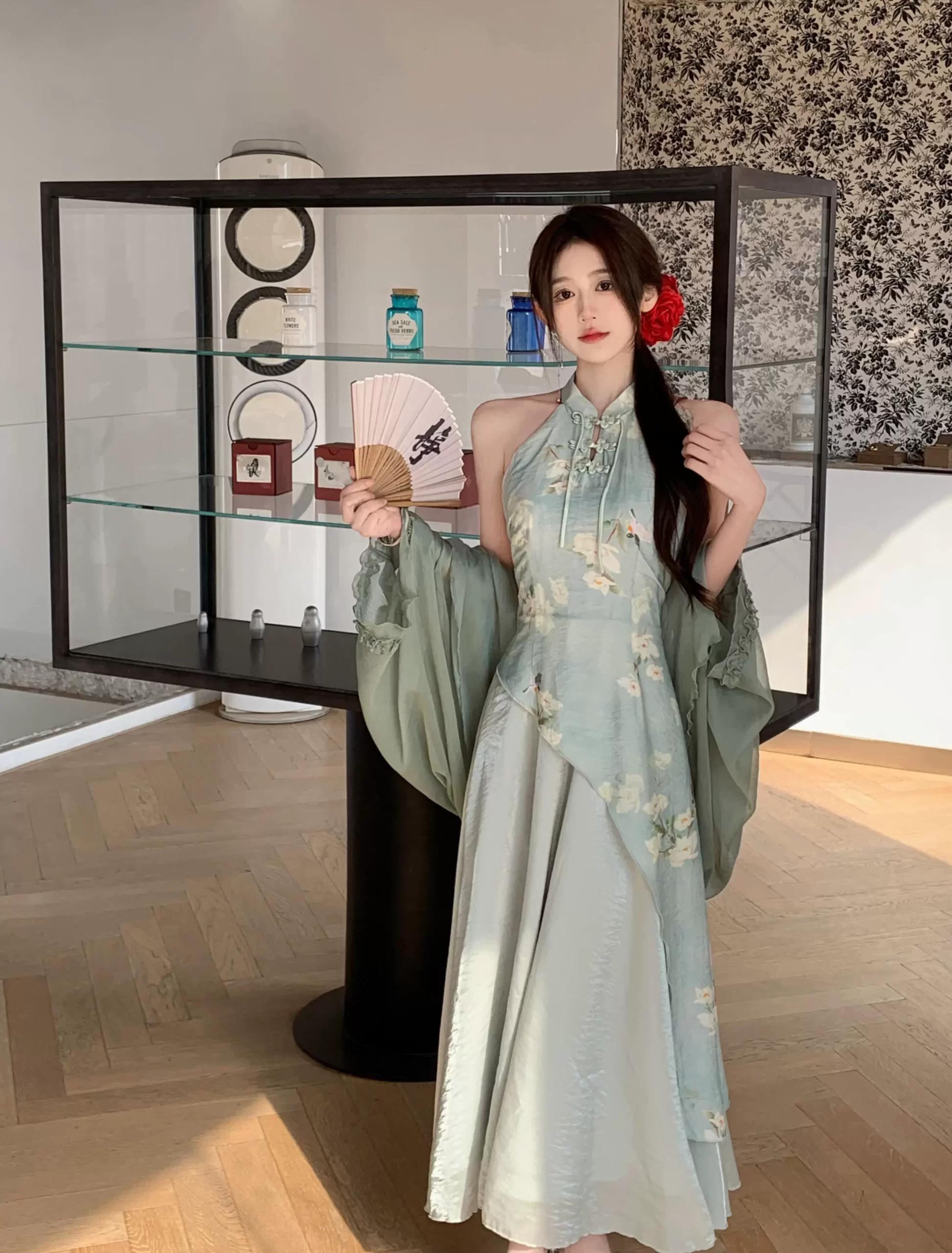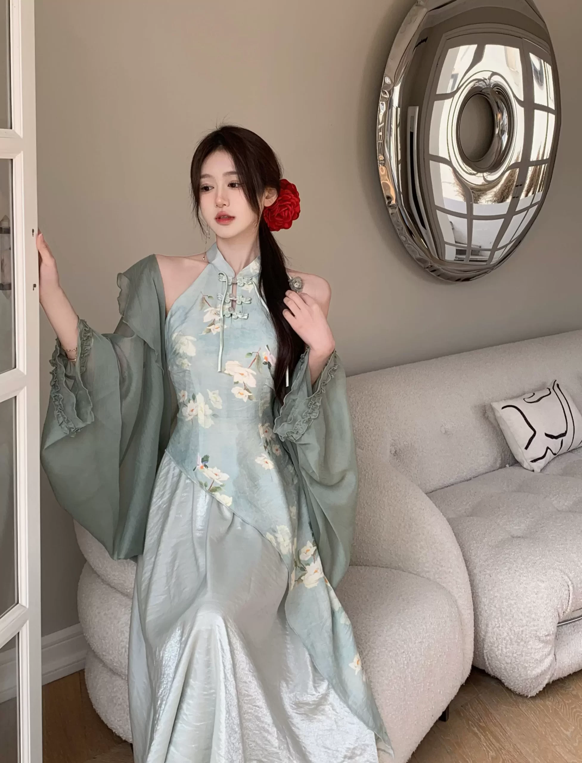 | nameOriginal | Chinese style cheongsam spring fat girl skirt two piece halter neck set |
