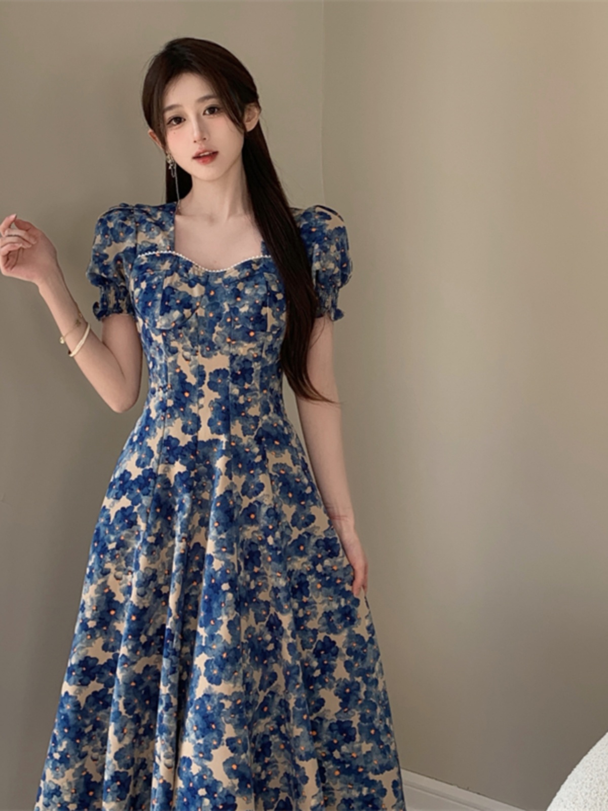 | nameOriginal | Chinese style chubby girl beach vacation long skirt floral suspenders |