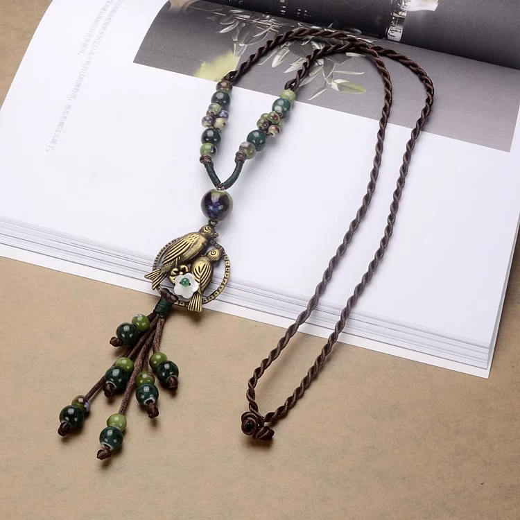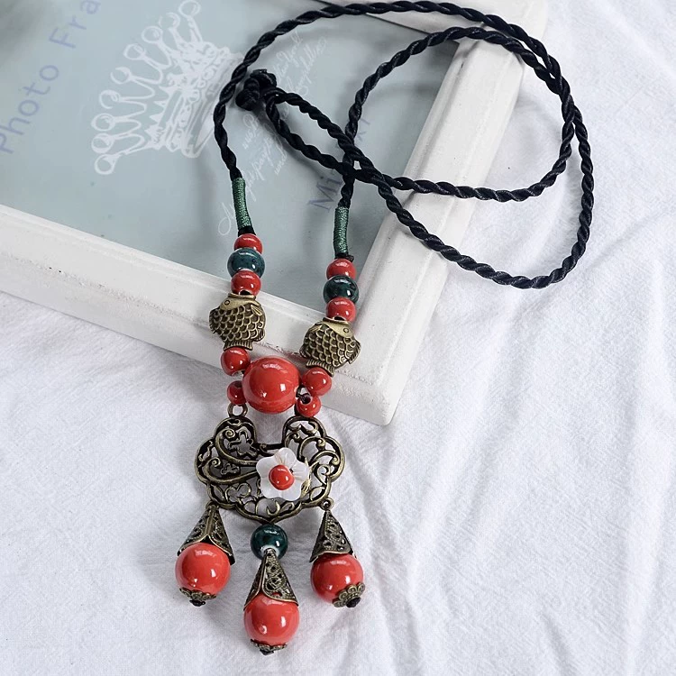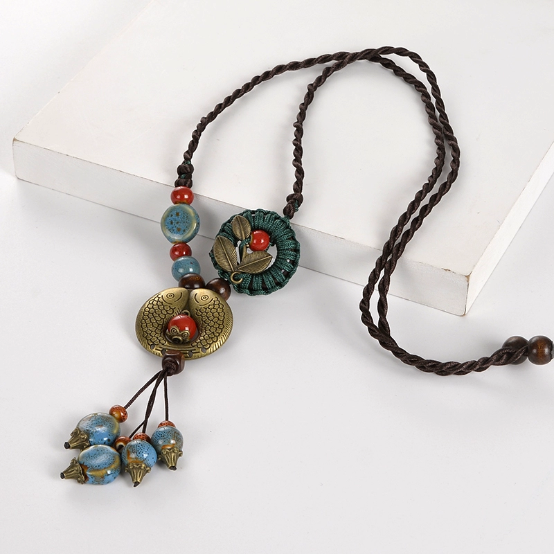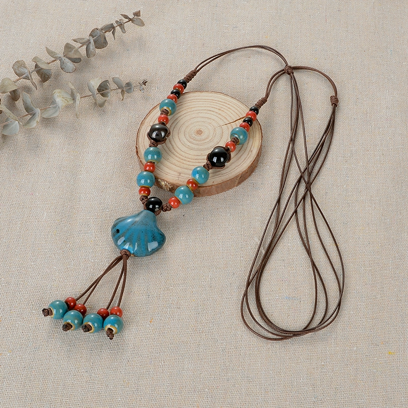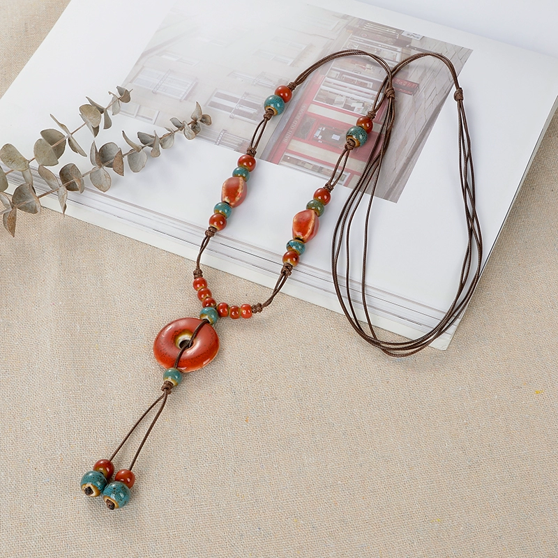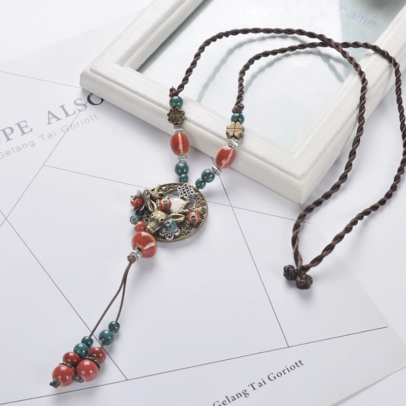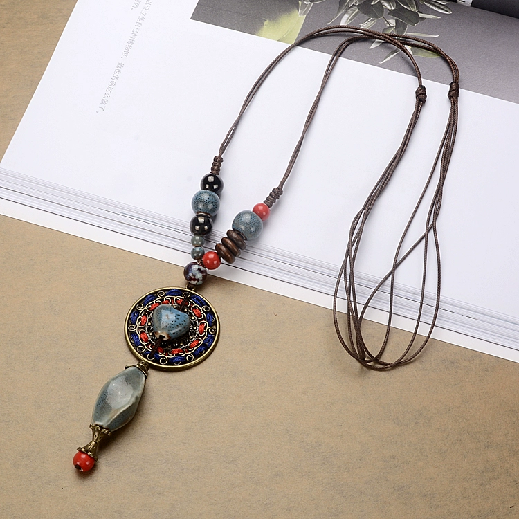 Chinese style classical Yunnan ceramic rope women’s sweater chain