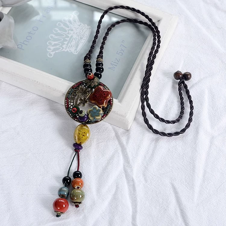 Chinese style classical Yunnan ceramic rope women's sweater chain