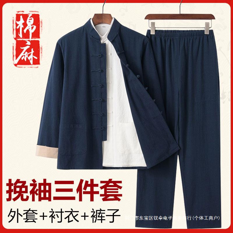 | nameOriginal | Chinese Style Cotton and Linen Tang Suit Men's Long-sleeved Three-piece Suit Chinese Style Men's Linen Hanfu Vintage Meditation Juniors Suit Men's Suit |