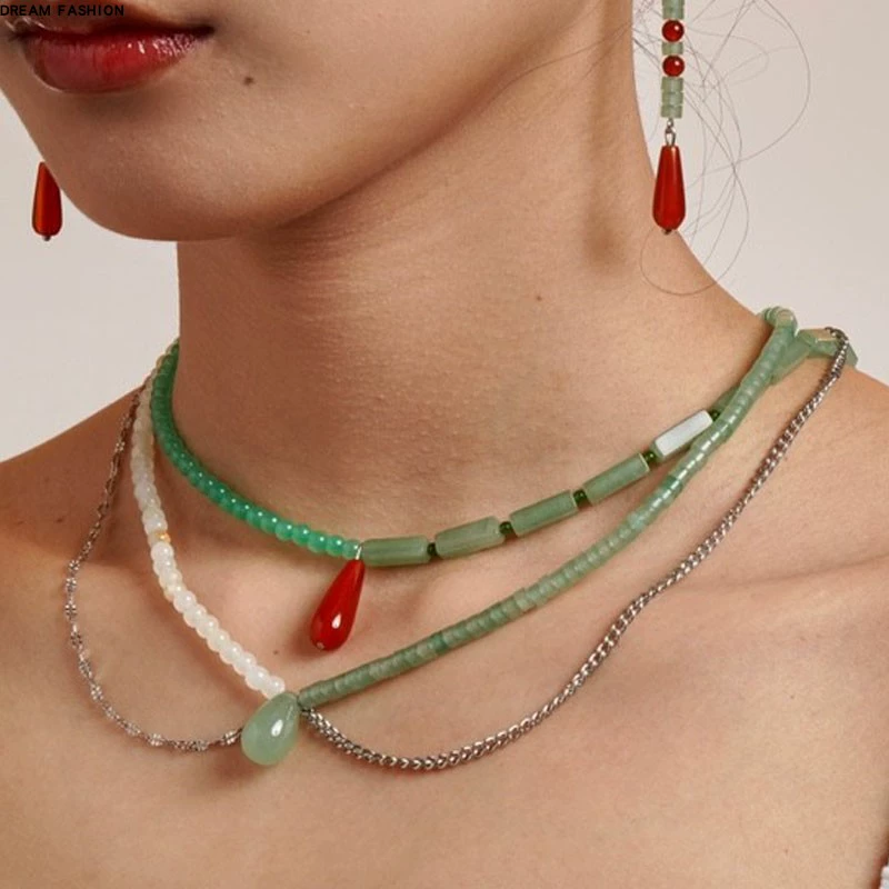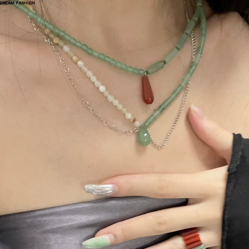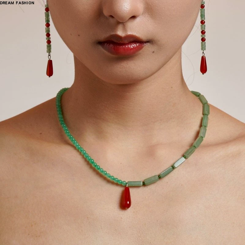 | nameOriginal | Chinese style design aventurine necklace and field jade red agate drop pendant accessories clavicle chain versatile |