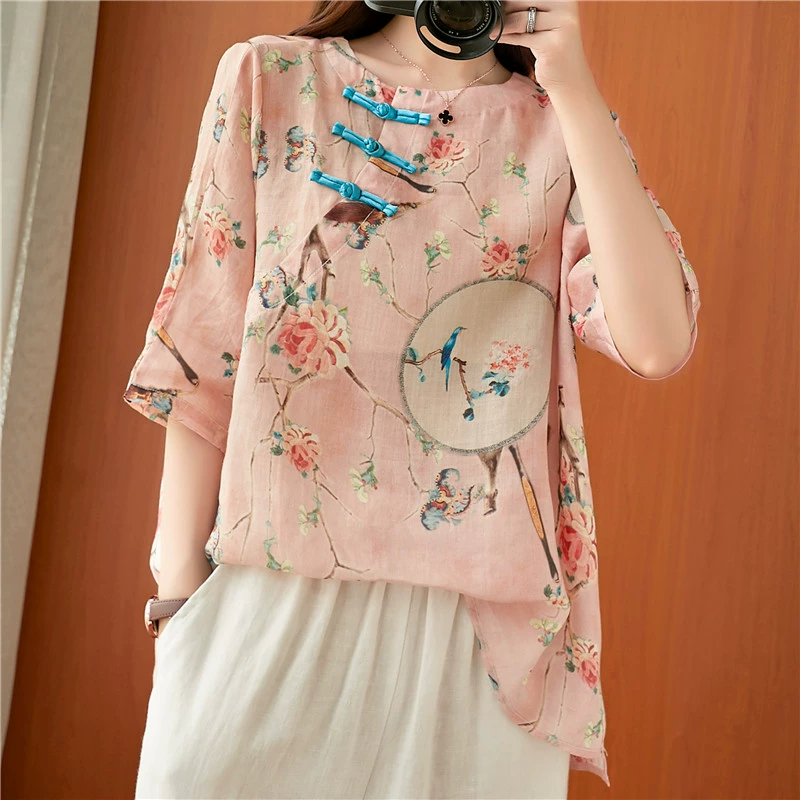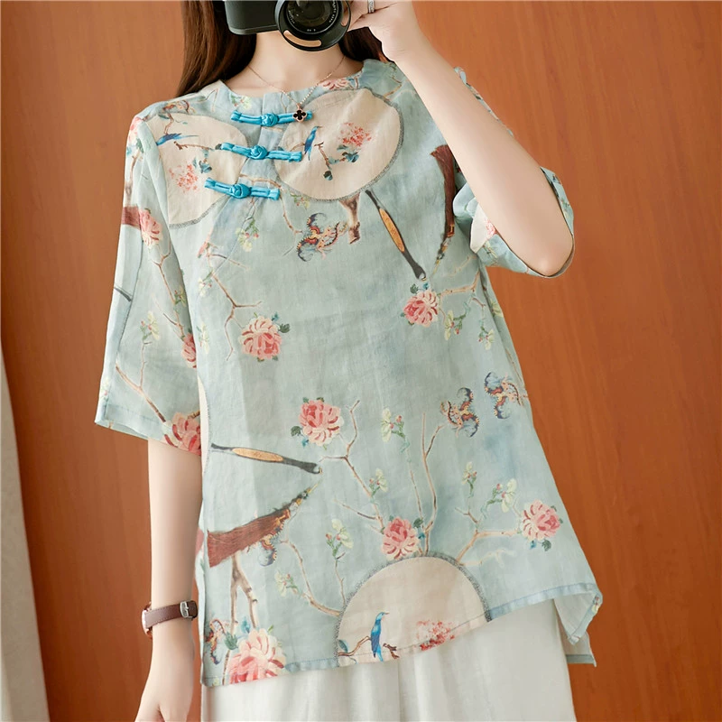 | nameOriginal | Chinese style diagonal placket short sleeves loose retro linen art |