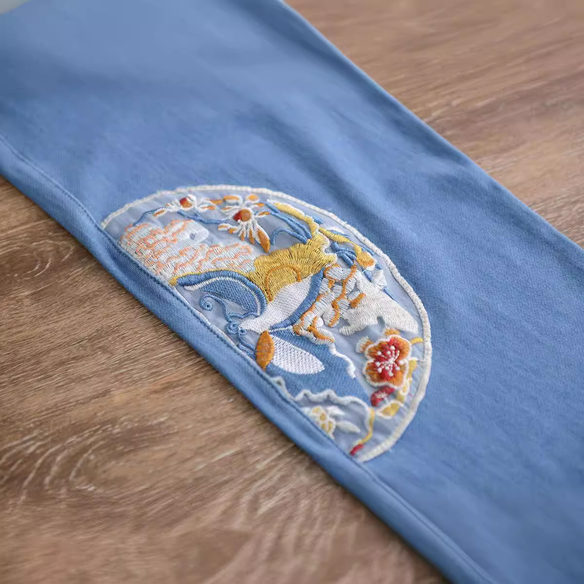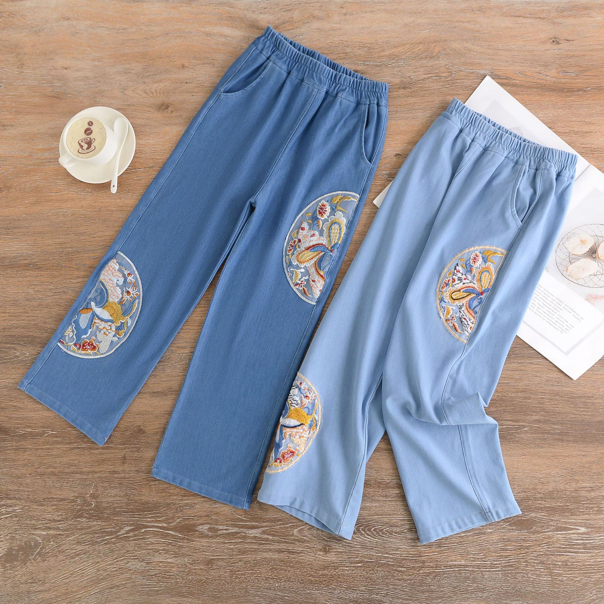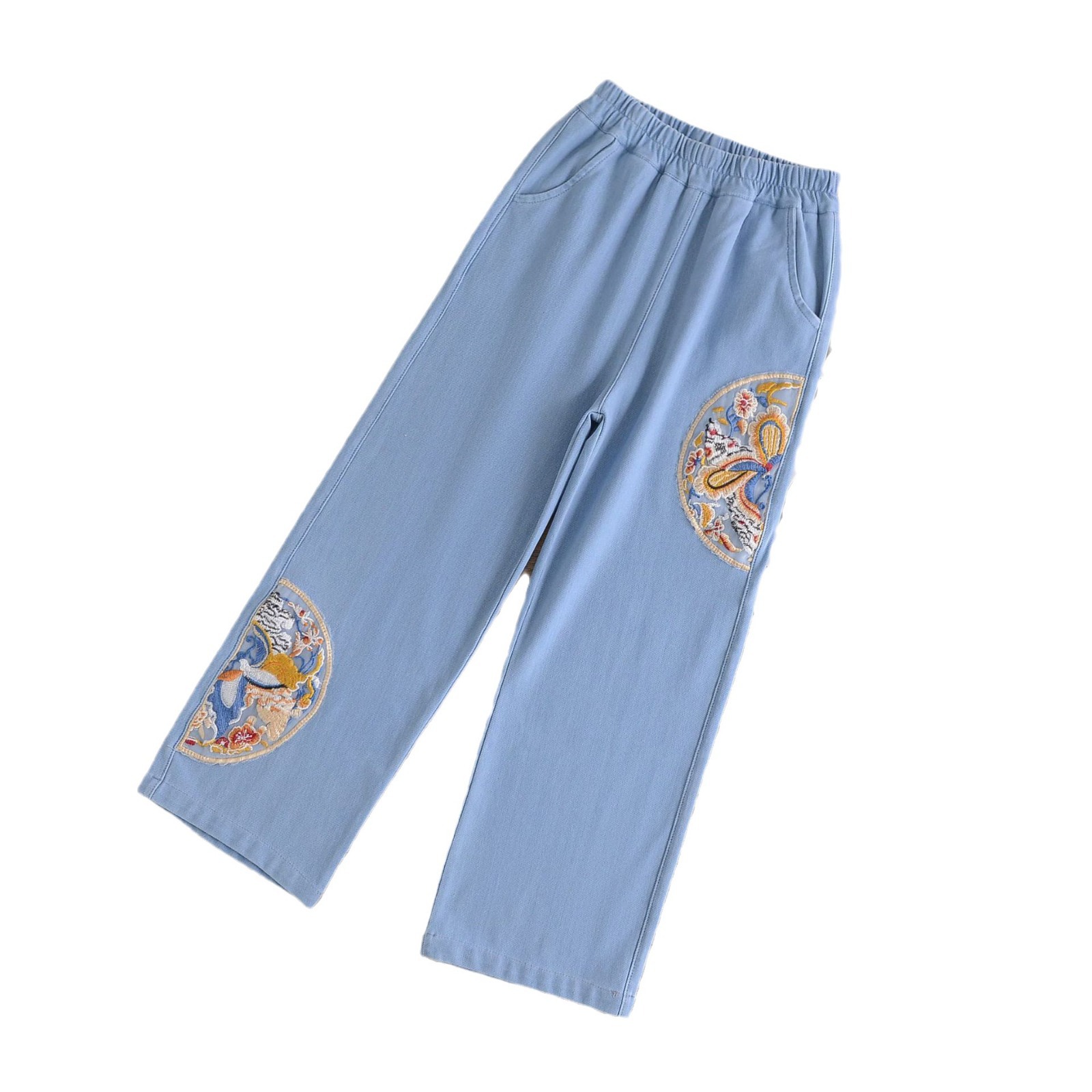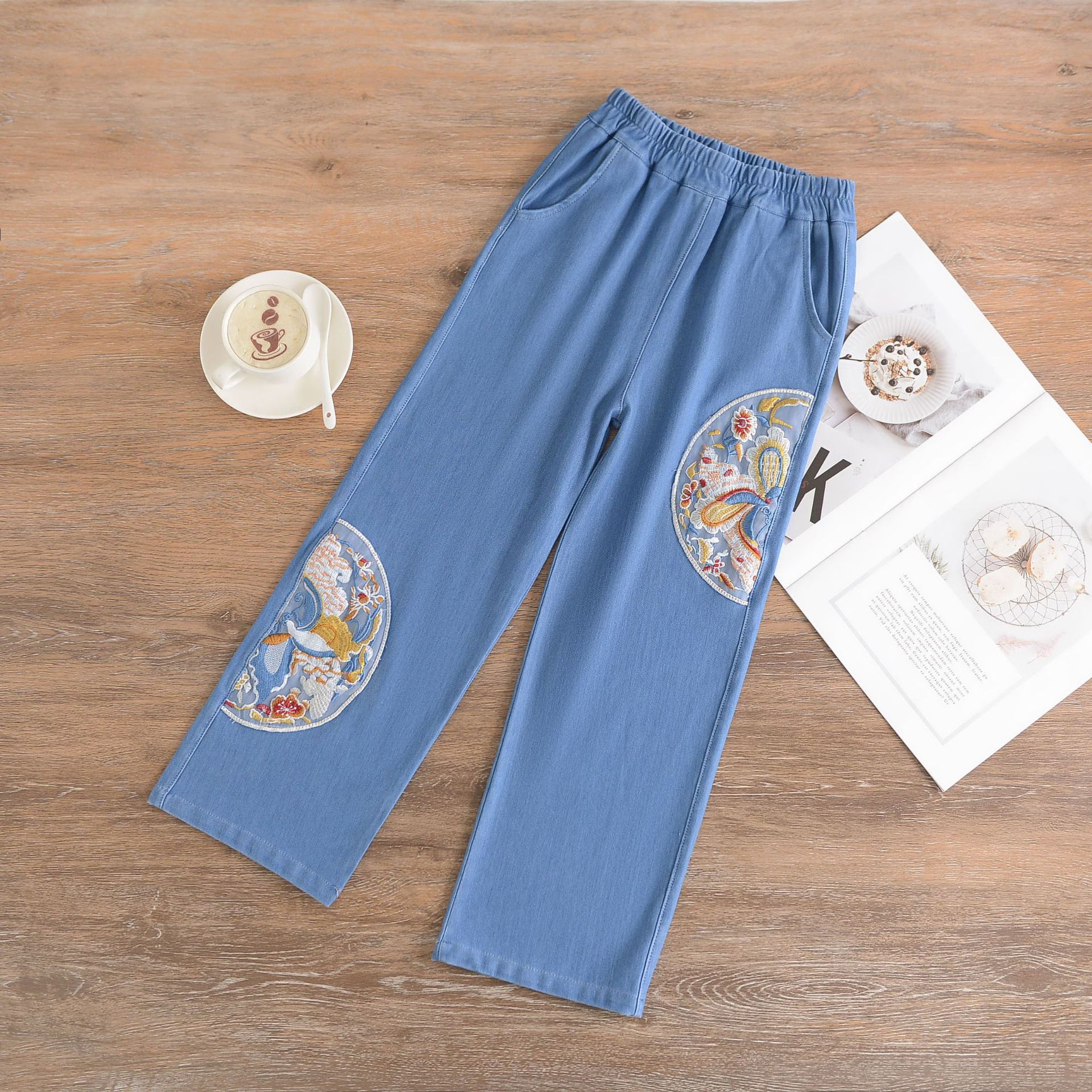 | nameOriginal | Chinese style draping wide-leg knitted stretch jeans for girls summer slimming new Chinese style embroidered wide-leg pants |