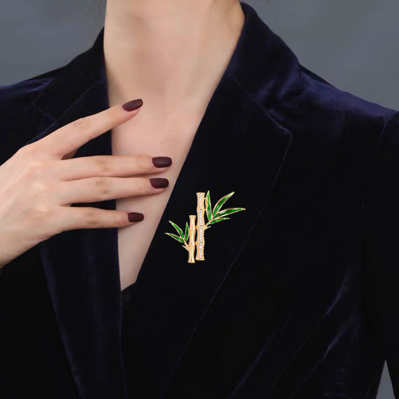 | nameOriginal | Chinese style elegant green bamboo brooch enamel painted high-end female corsage coat pin decorations sweater accessories |
