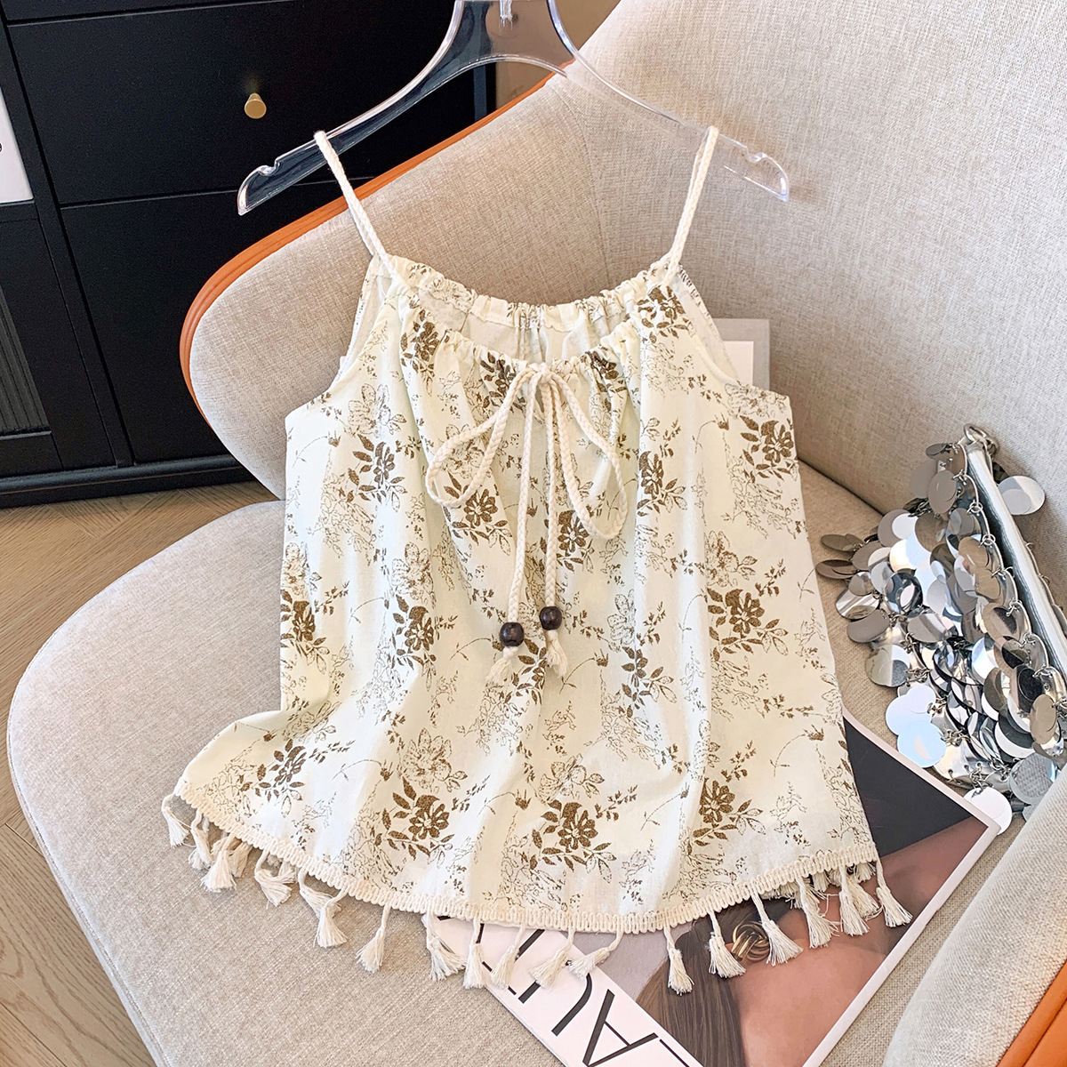 | nameOriginal | Chinese Style Floral Tassel Camisole Women's Summer New Chinese Style Loose Short Chic Sleeveless Top |