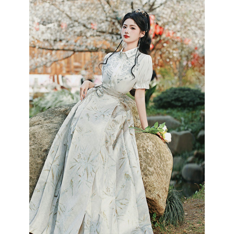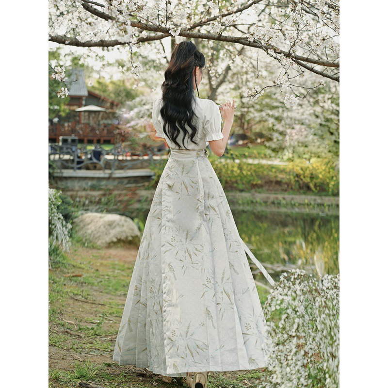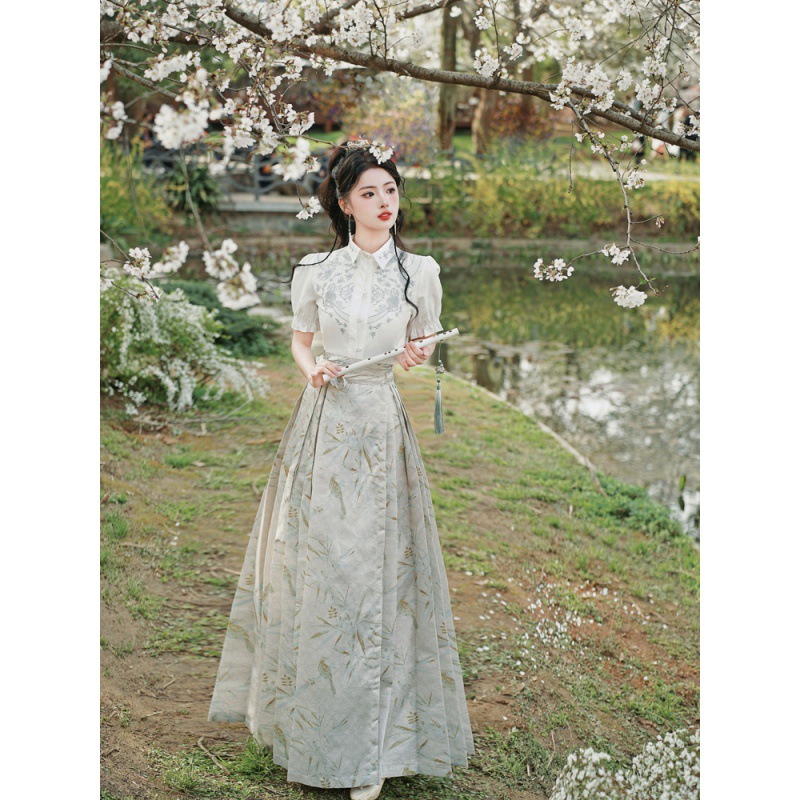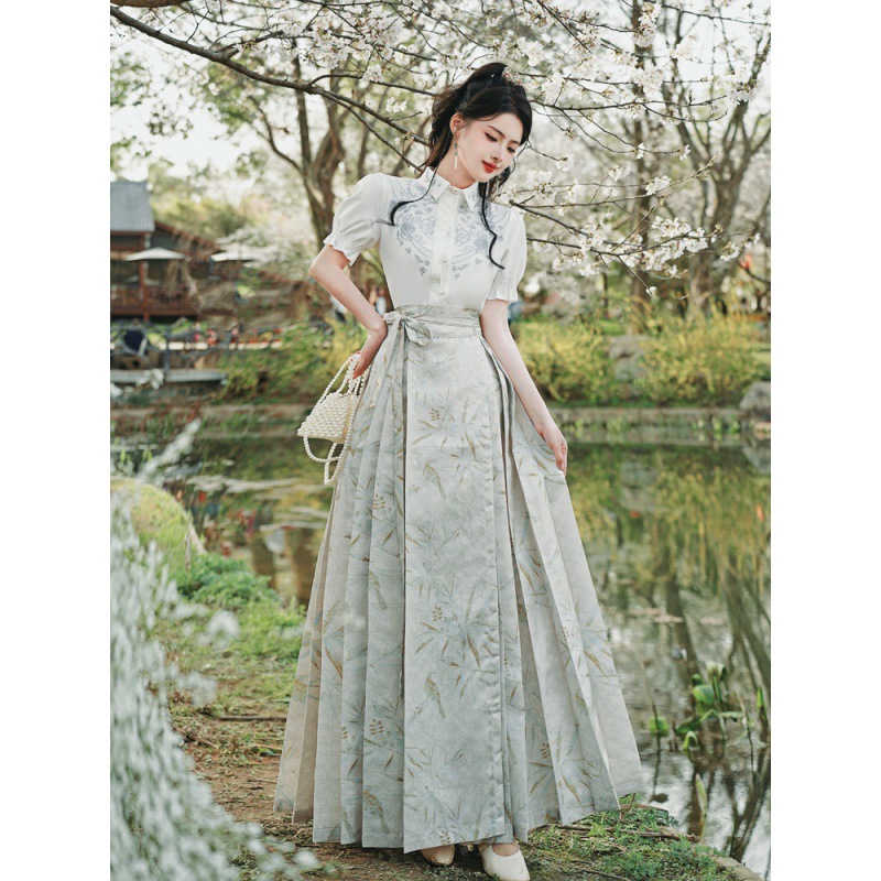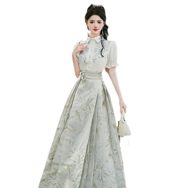 | nameOriginal | Chinese Style Hanfu Han Element Embroidery Short Sleeve Top Small Bronzing Horse Face Skirt suit 2024 New Summer |