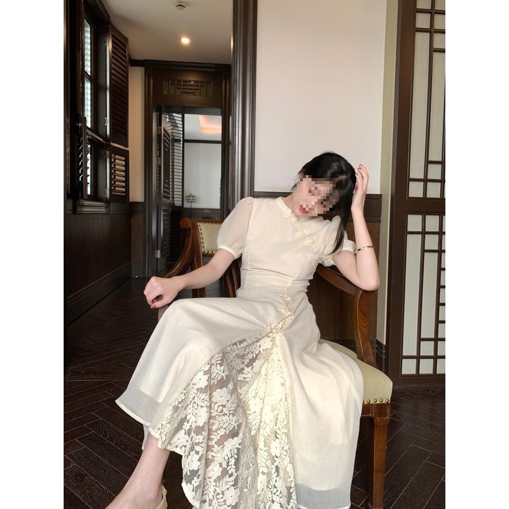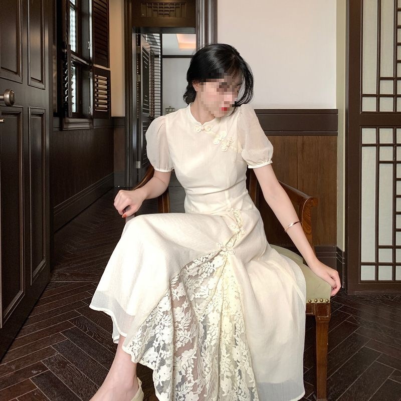 | nameOriginal | Chinese Style Improved dress Women's 2022 Summer New Arrival Stitching Lace Puff Sleeve Tight Waist French Cheongsam |
