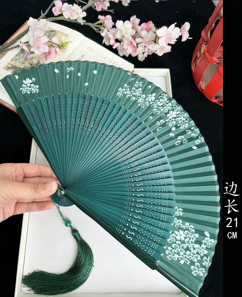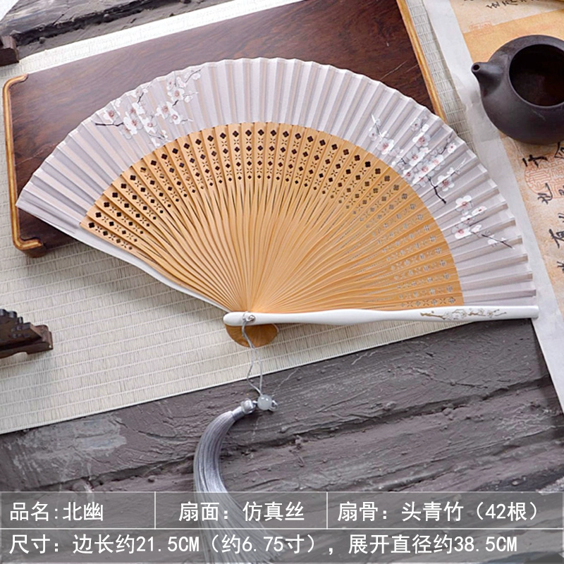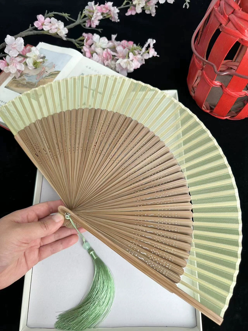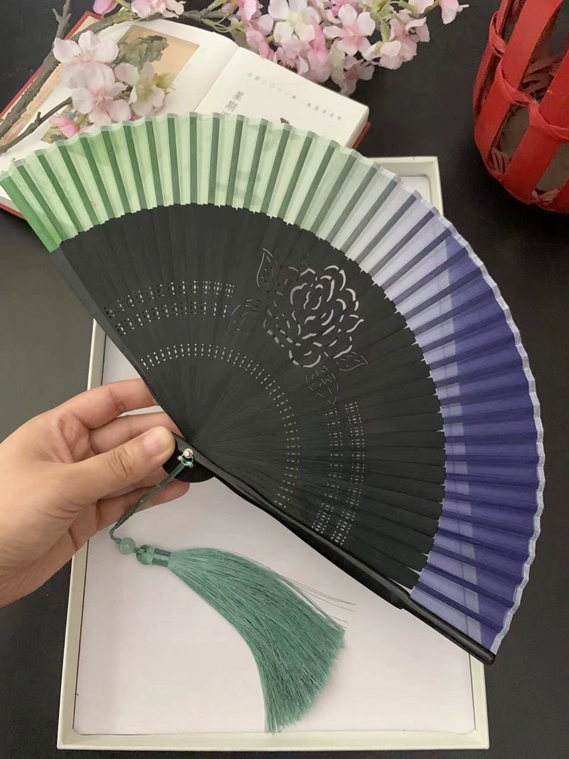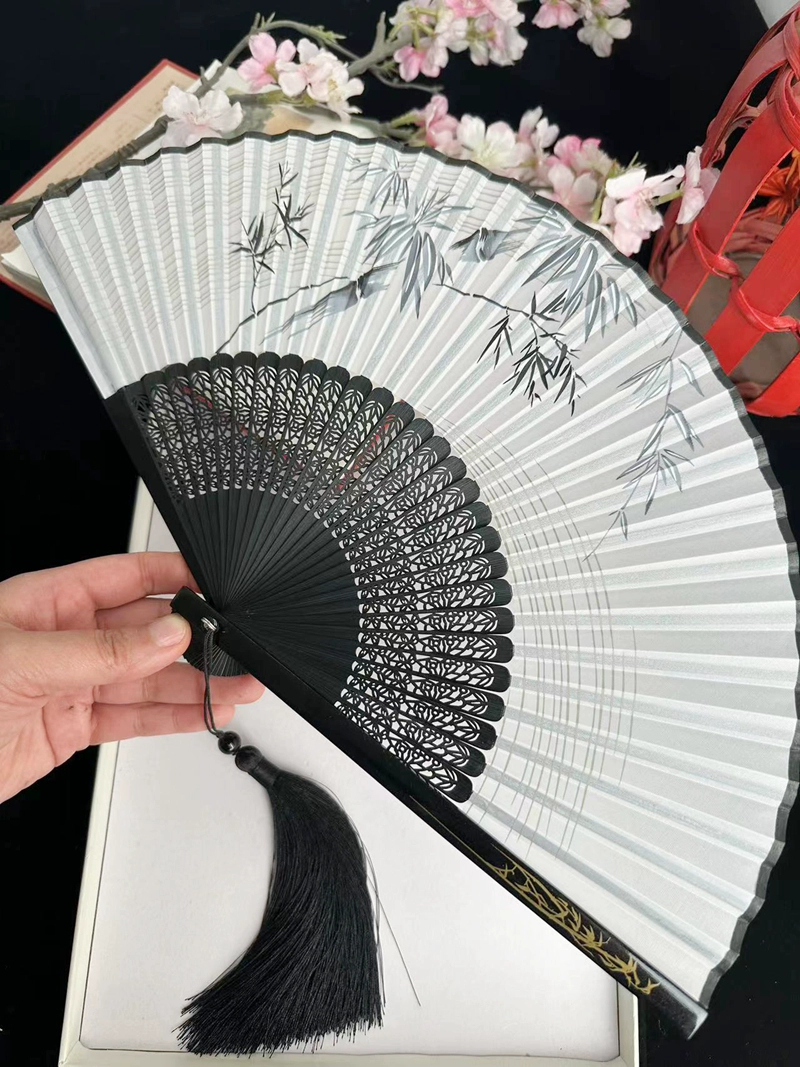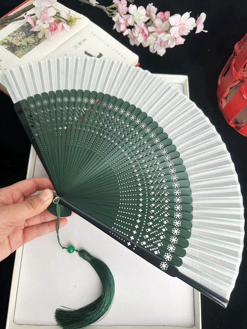 | nameOriginal | Chinese style ink bamboo fan hollow carved white green bamboo plum blossom ancient style classical folding fan Hanfu dance |