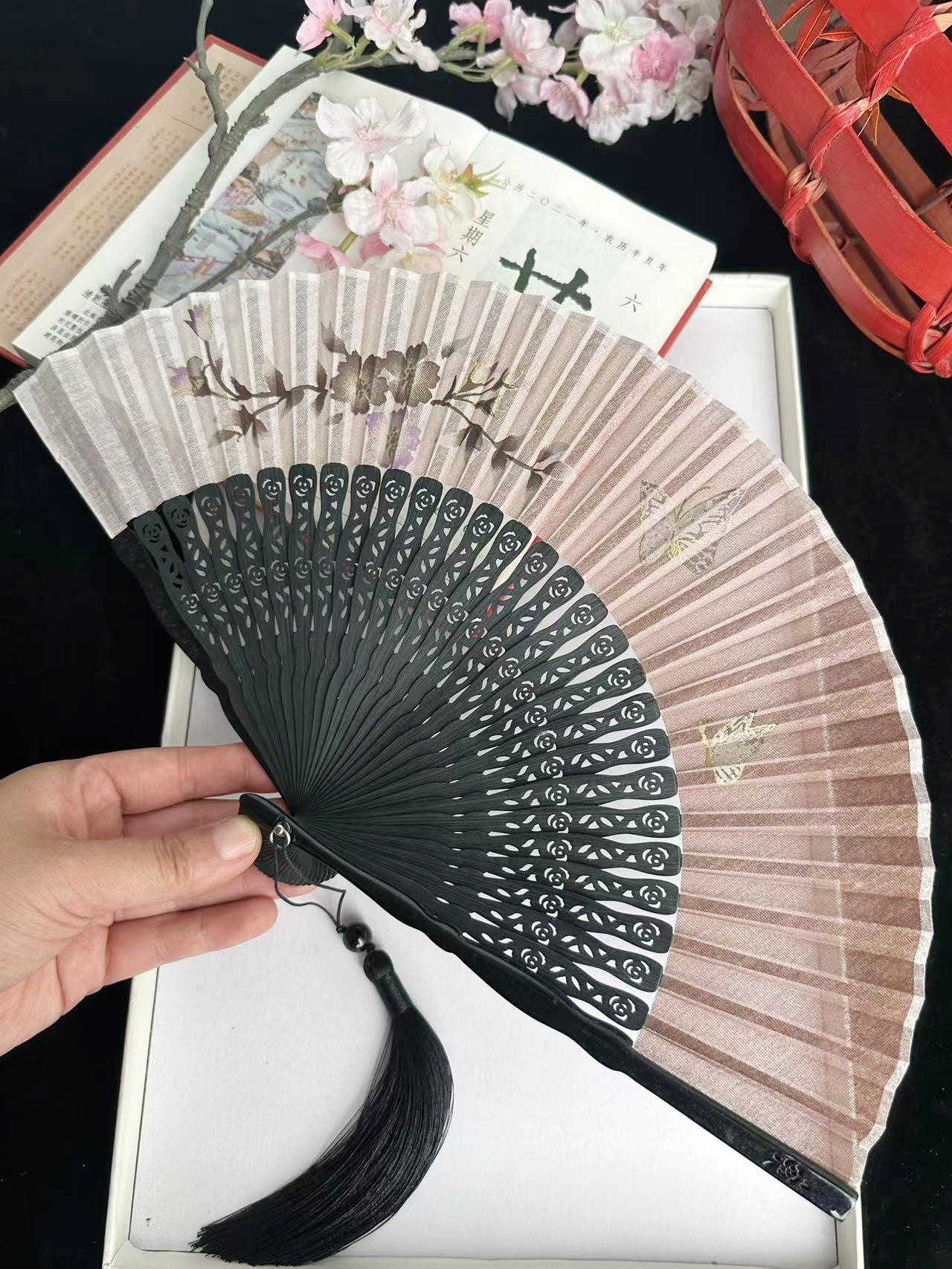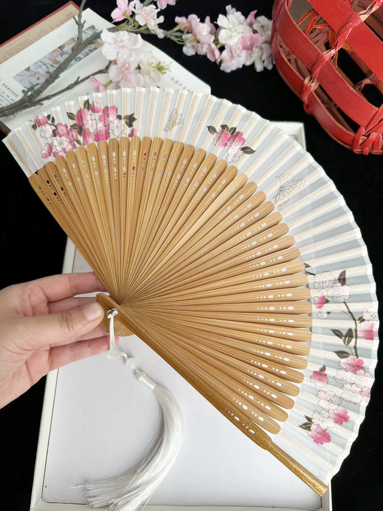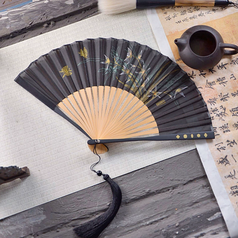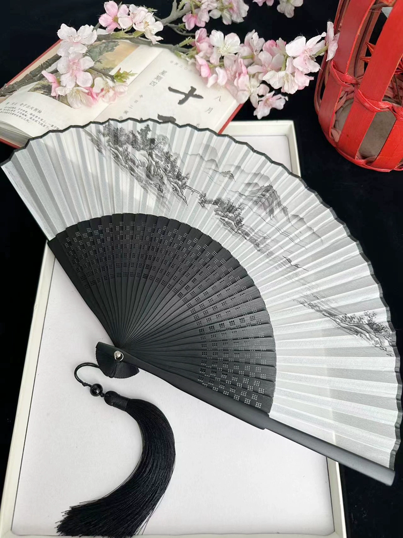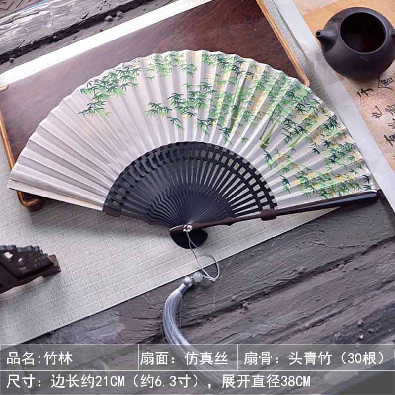 | nameOriginal | Chinese style ink bamboo fan hollow carved white green bamboo plum blossom ancient style classical folding fan Hanfu dance |