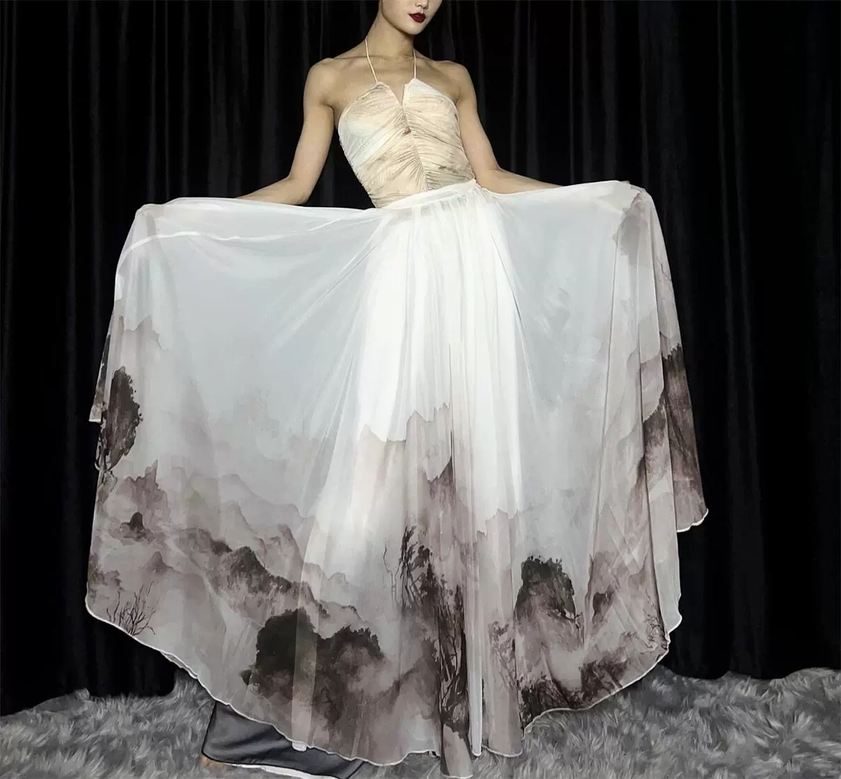 | nameOriginal | Chinese style ink Xinjiang dance performance costume skirt |