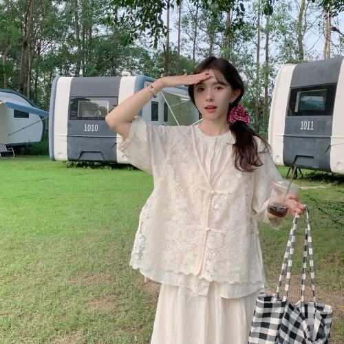 | nameOriginal | Chinese style lace vest embroidered high waist three piece set with buckle |
