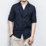 Chinese style large size cotton and linen three-quarter sleeve shirt Tang suit