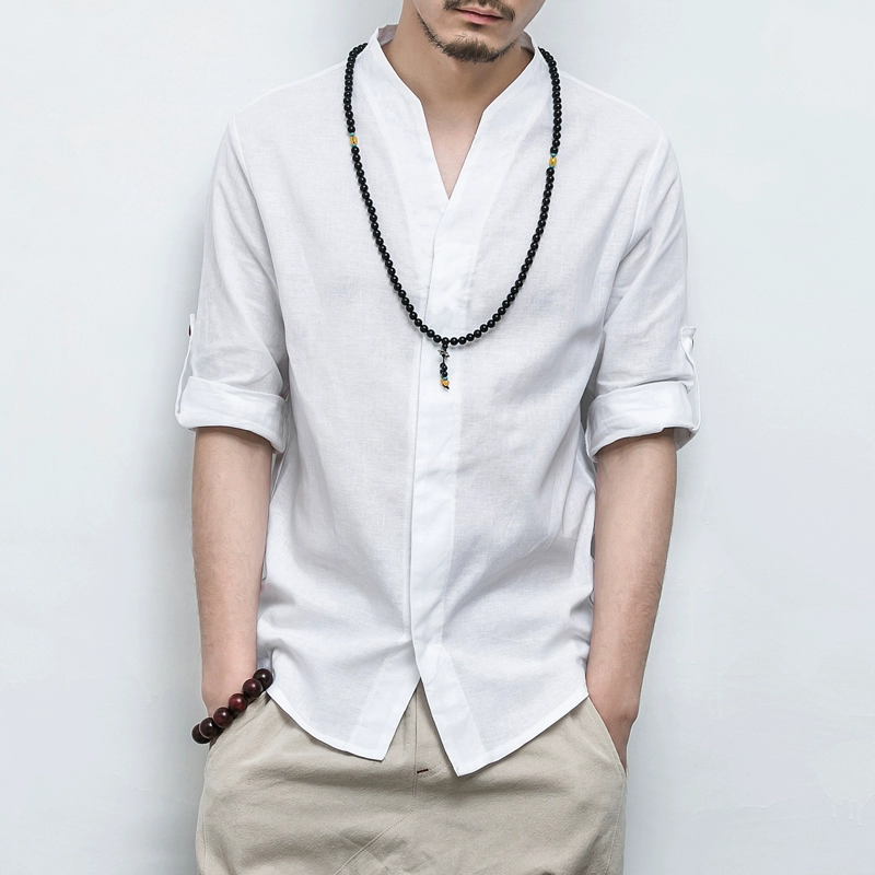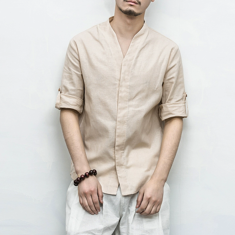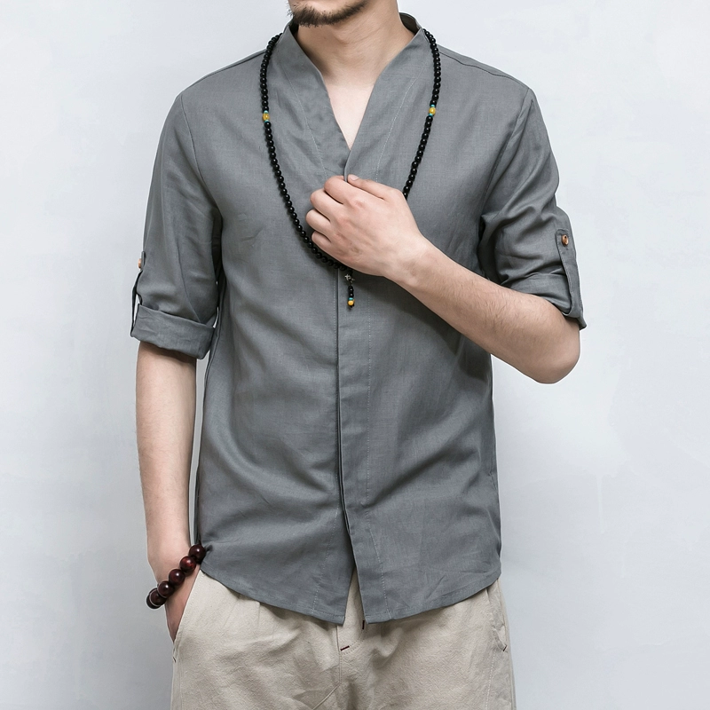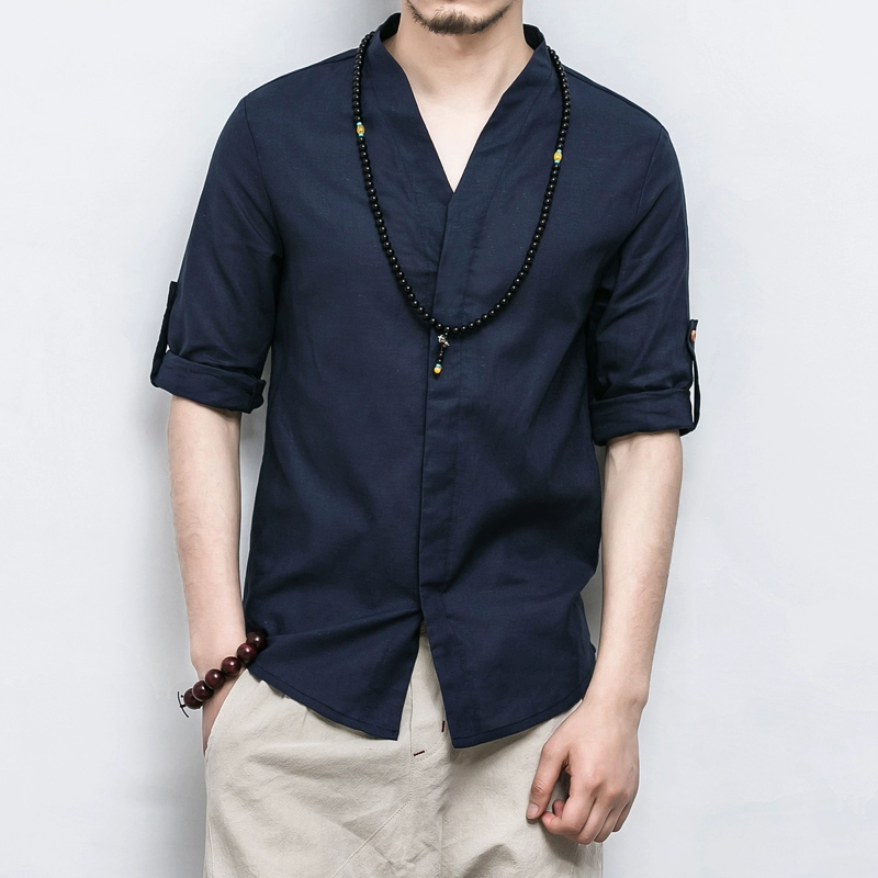 Chinese style large size cotton and linen seven -point sleeve shirt Tang clothing