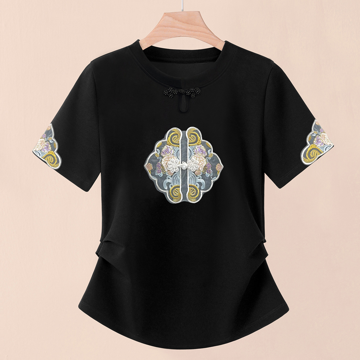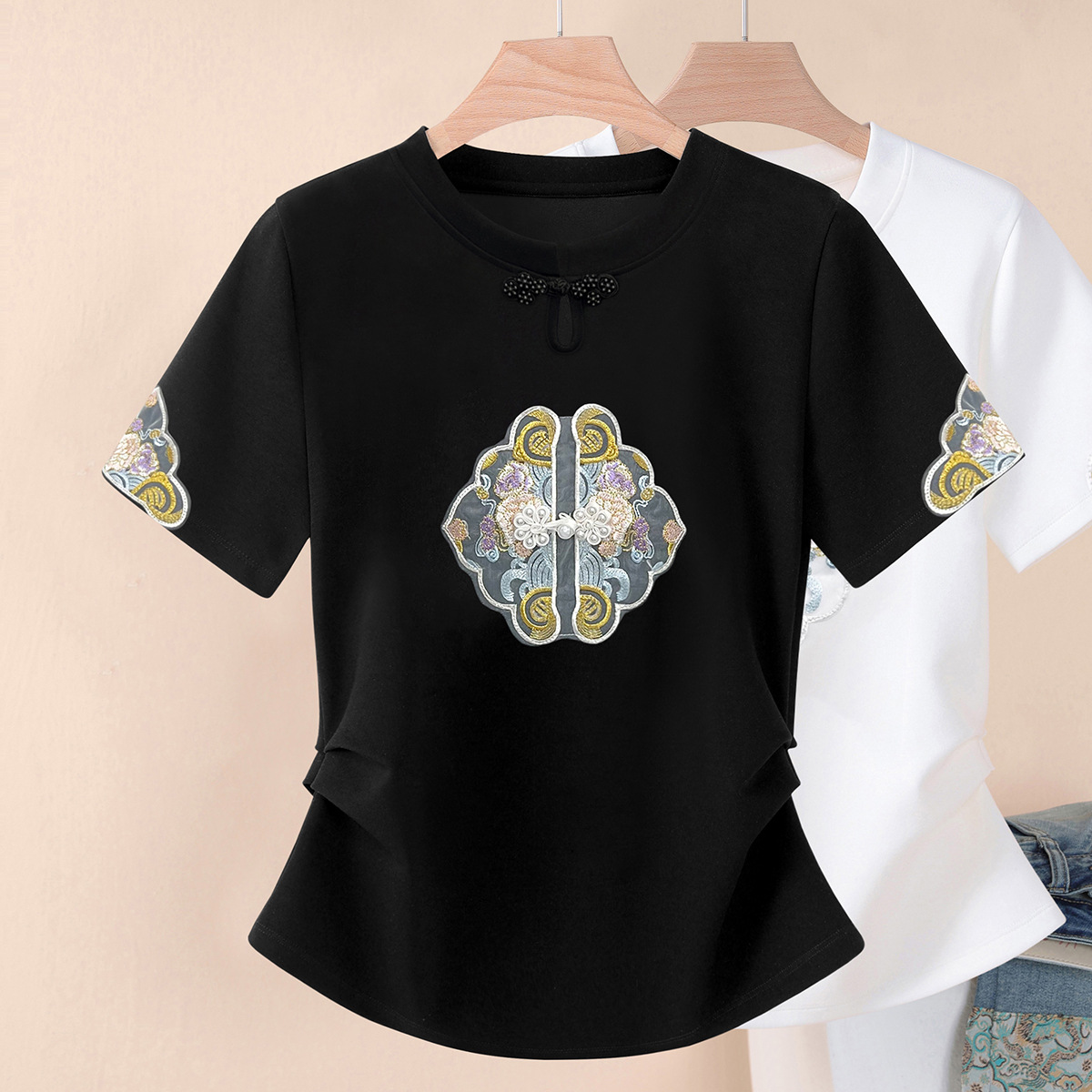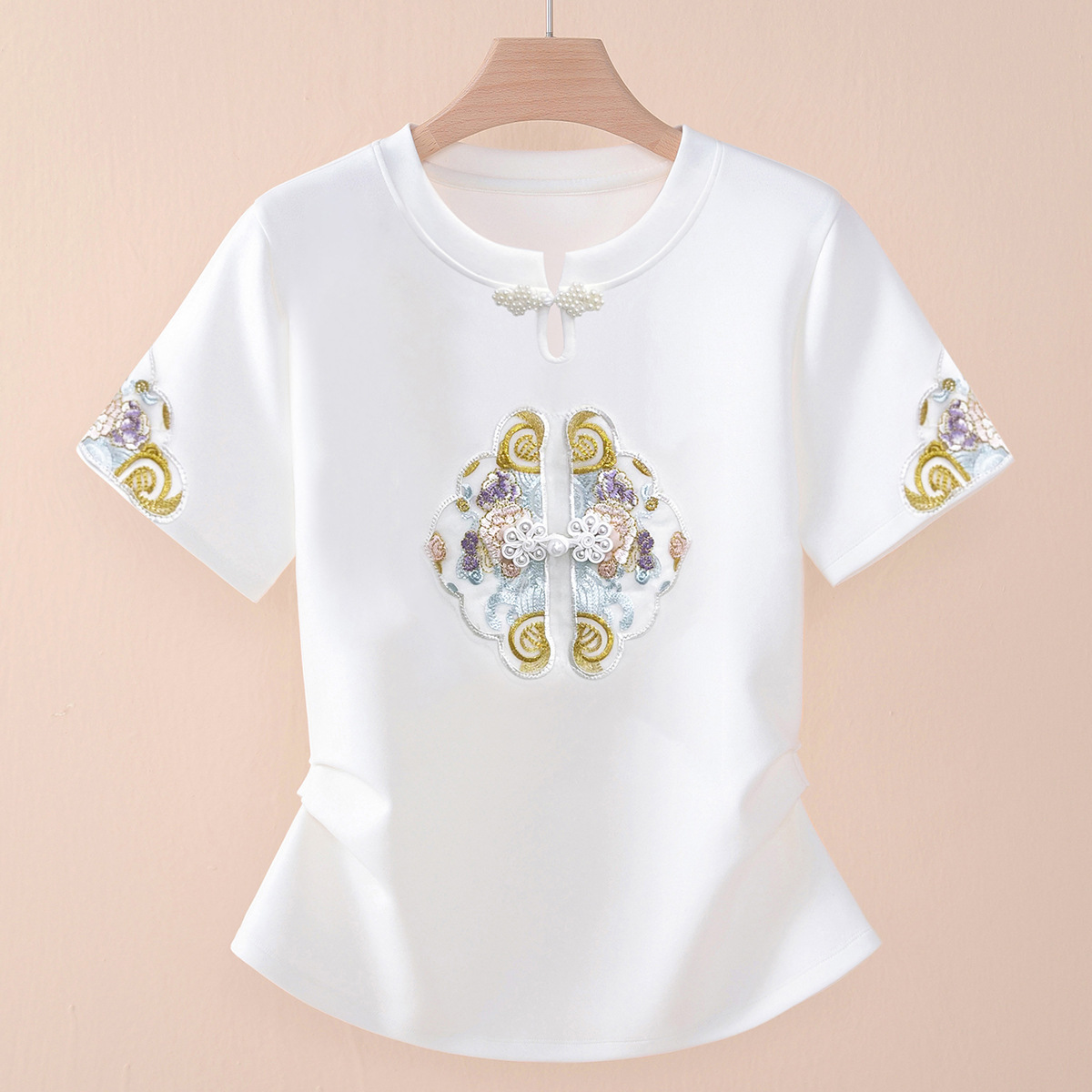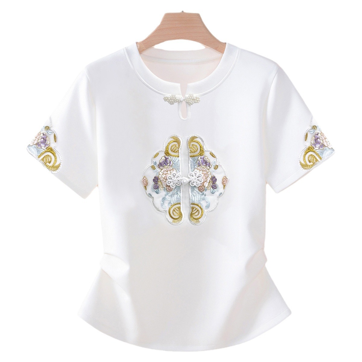 | nameOriginal | Chinese Style National Style Buckle T-shirt Women's White Short-sleeved 2024 New Women's Clothing Heavy Industry Design Sense Niche Tight Waist Top |