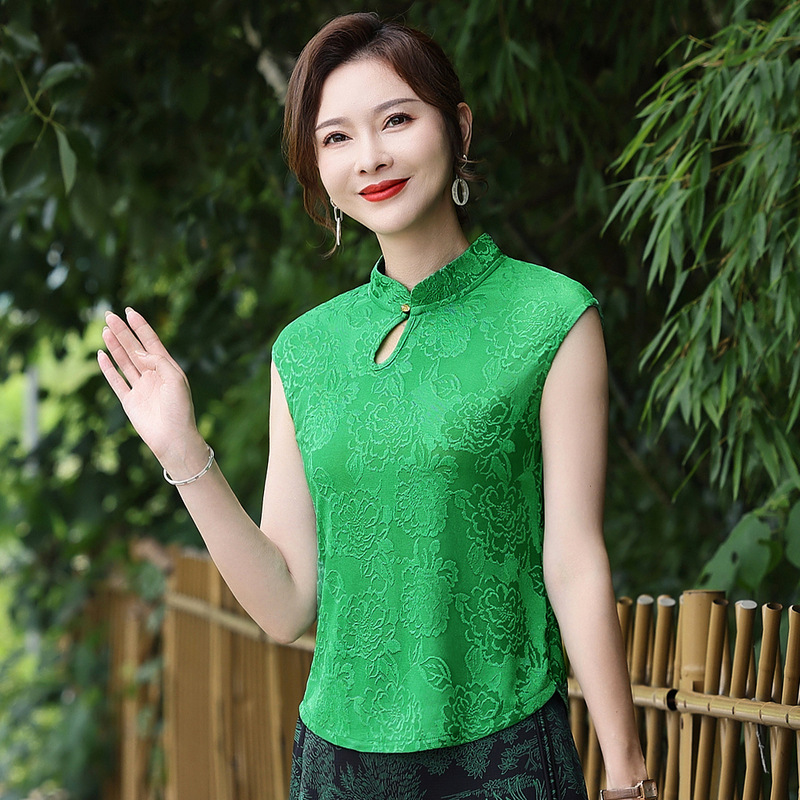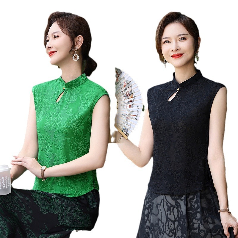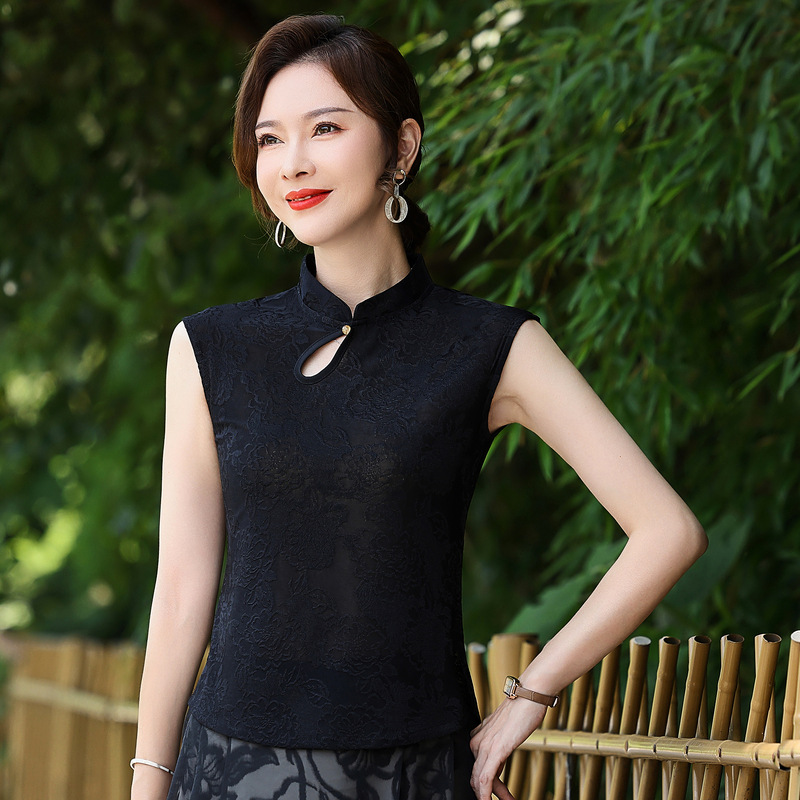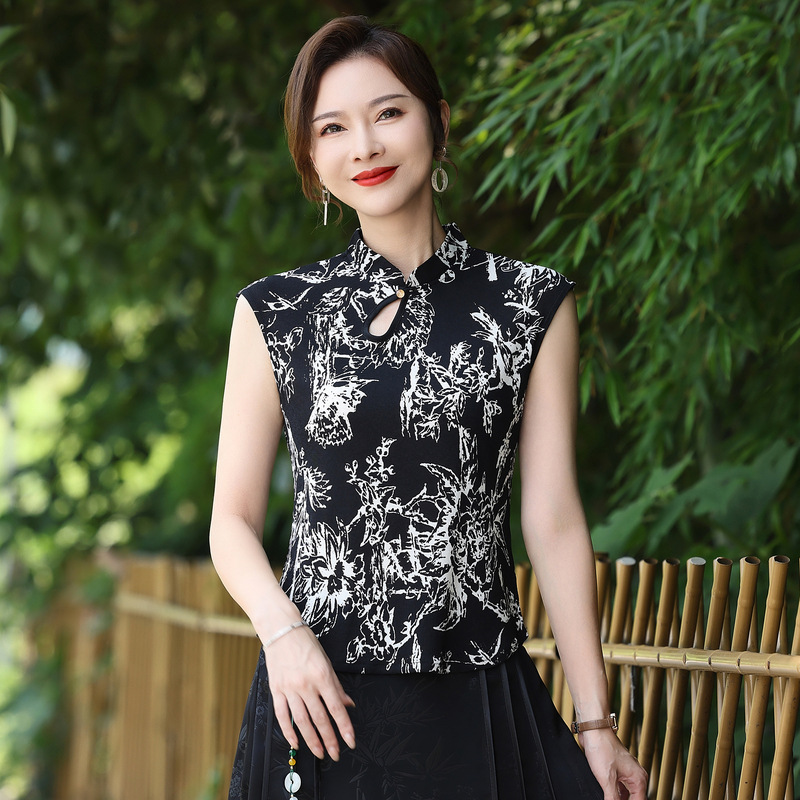 Chinese Style National Style Vertical Collar Summer New Arrival Buckle Top Retro Hollow Elegant Fashion Sleeveless Thin Vest Skirt