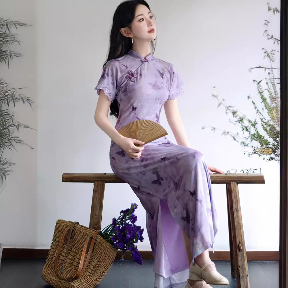 | nameOriginal | Chinese Style New Chinese Style Retro Modified Purple Butterfly Cheongsam dress Women's Summer |