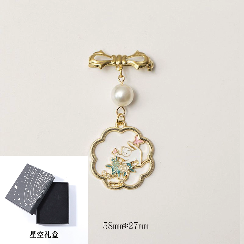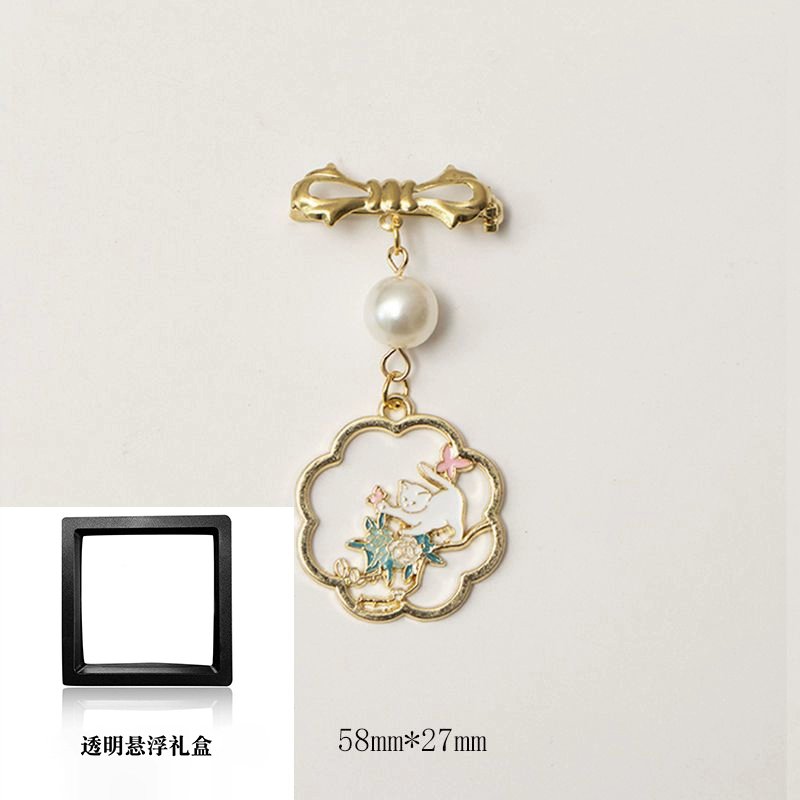 Chinese style Chinese New Year implies cat fairy crane hollow koi brooch badges new creative Chinese retro decoration