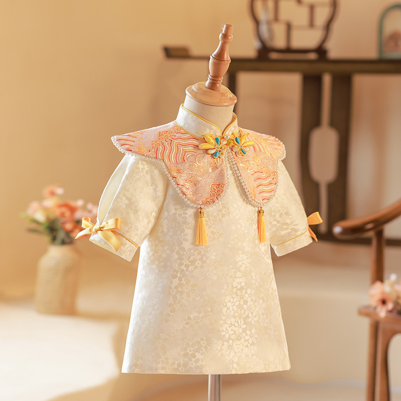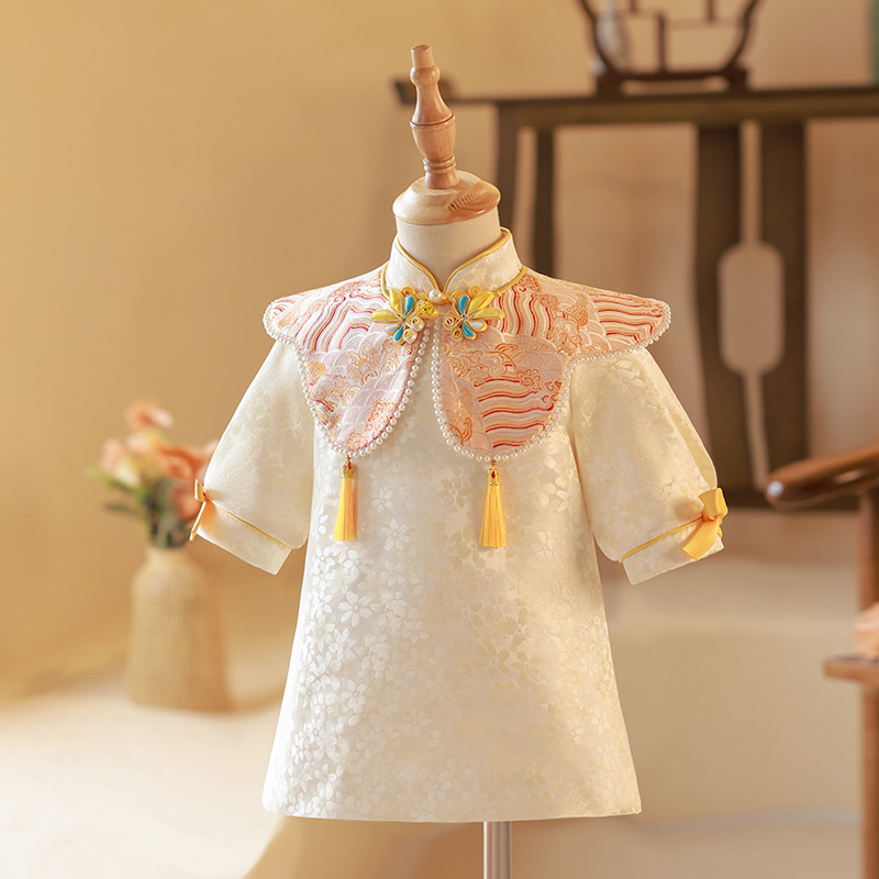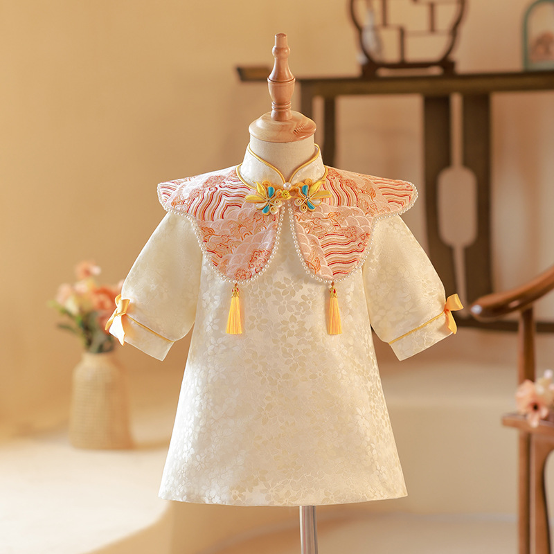 Chinese-style one-year-old dress for baby girl 2024 new arrival children catch Zhou Tang suit baby Crown clothing National style girl cheongsam Spring