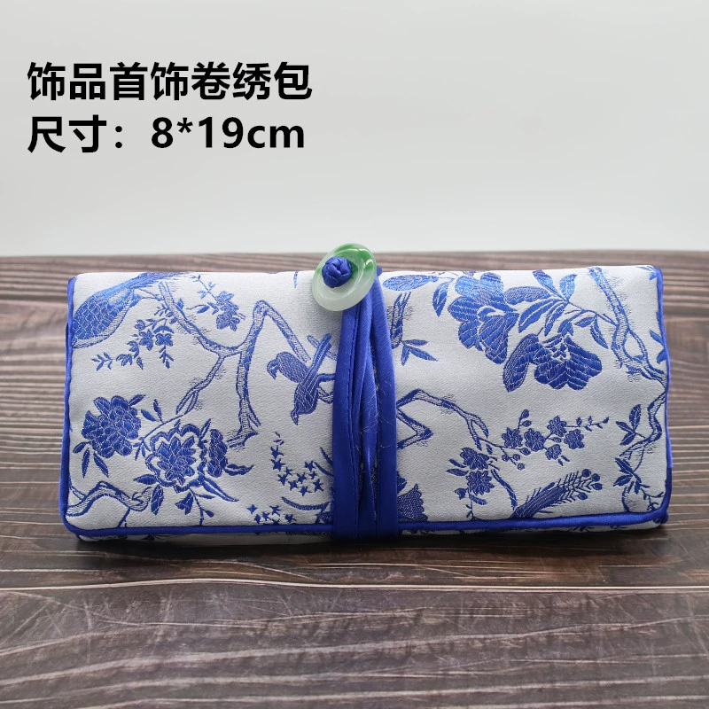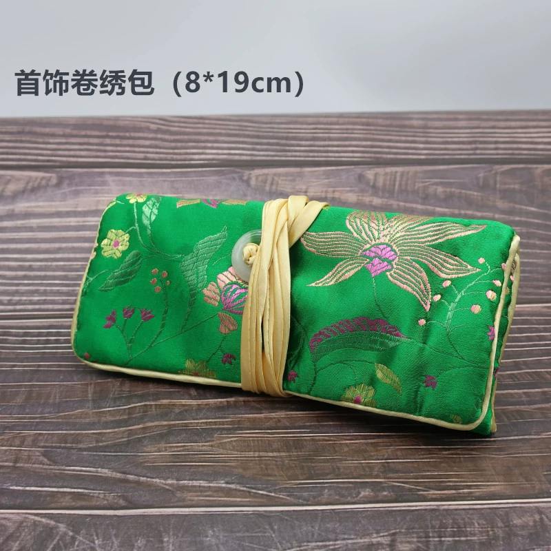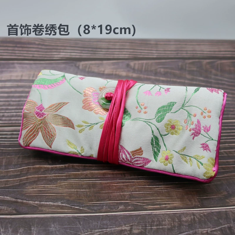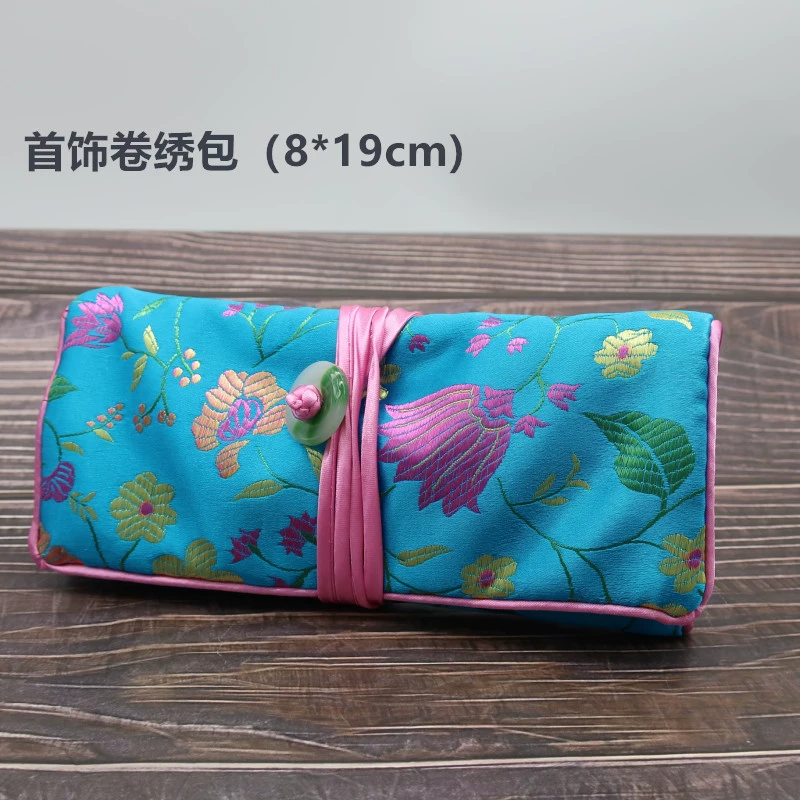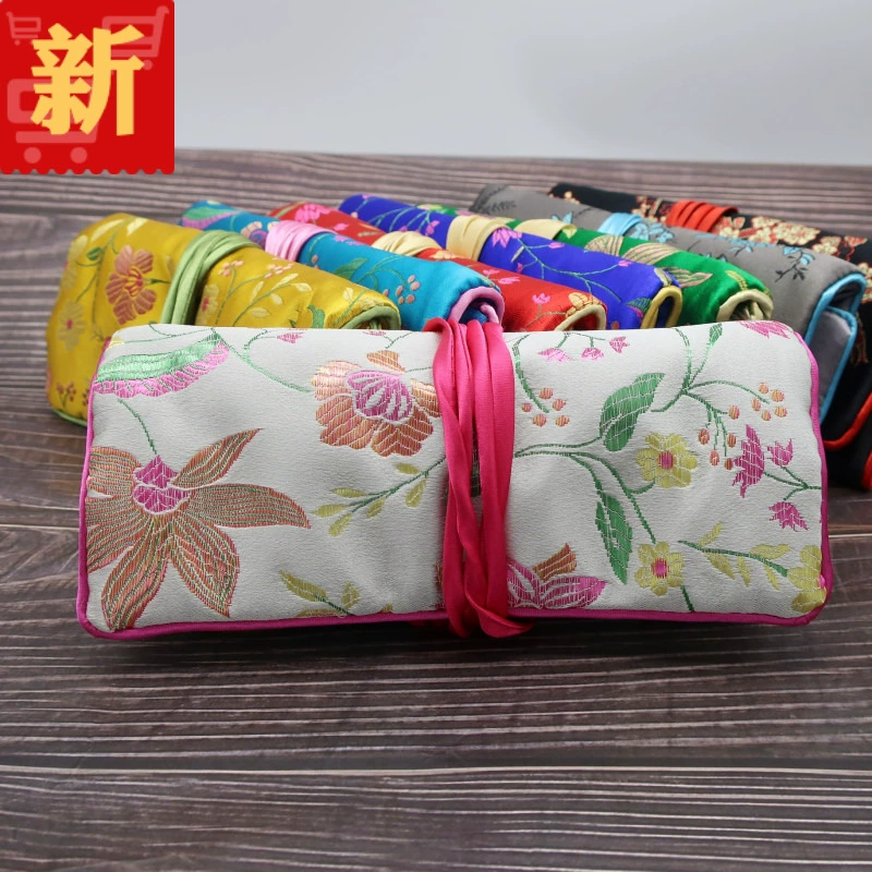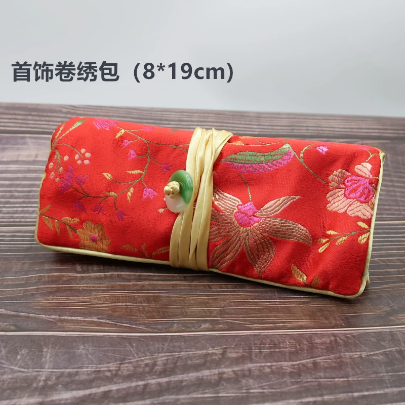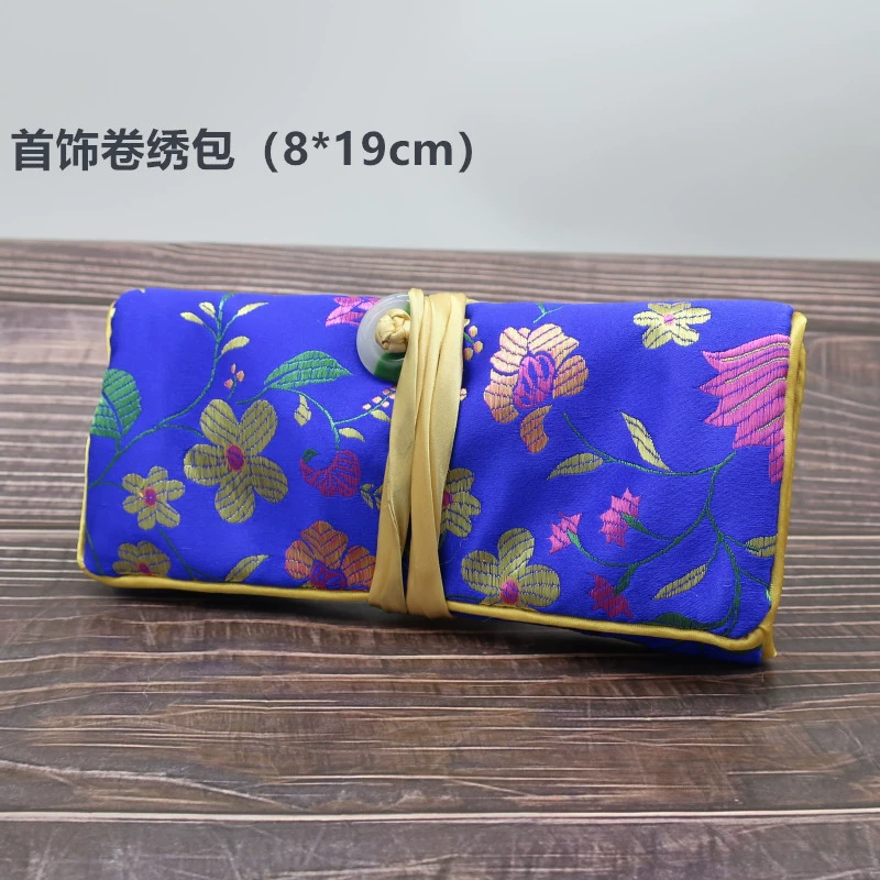 Chinese style play double layer jewelry rolled embroidered bag brocade bag