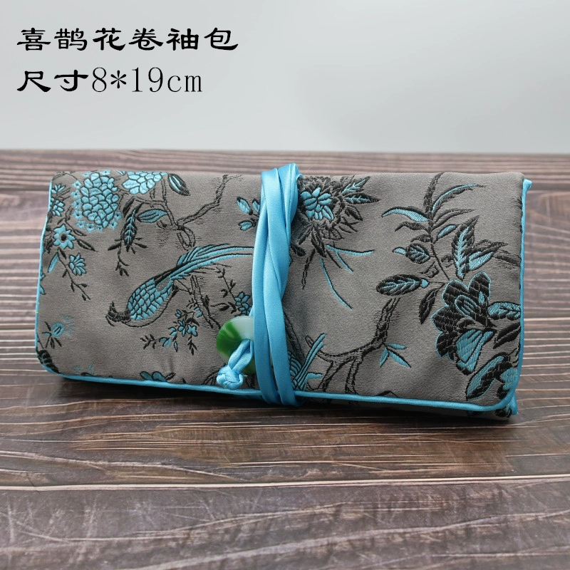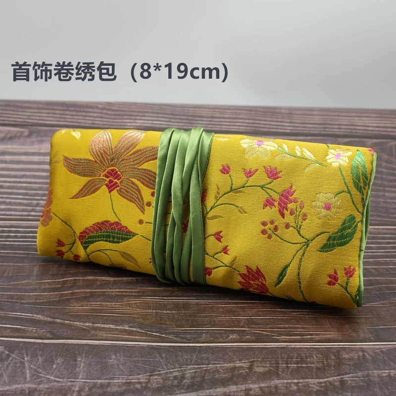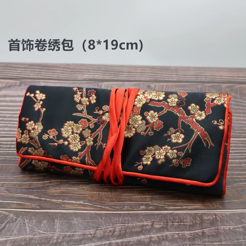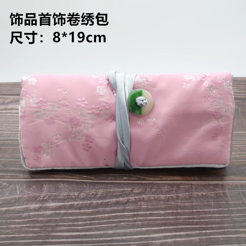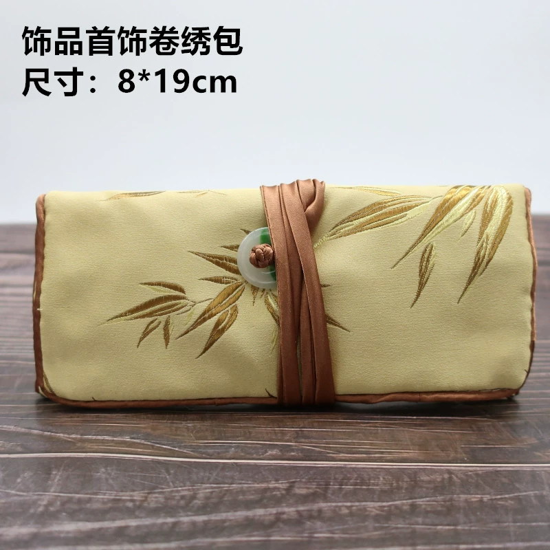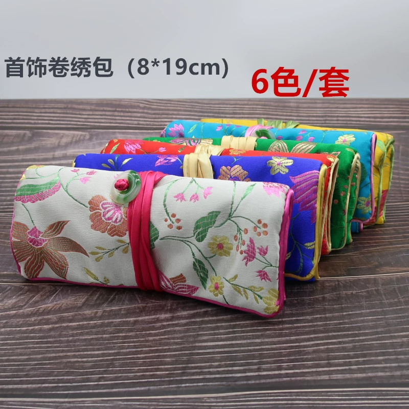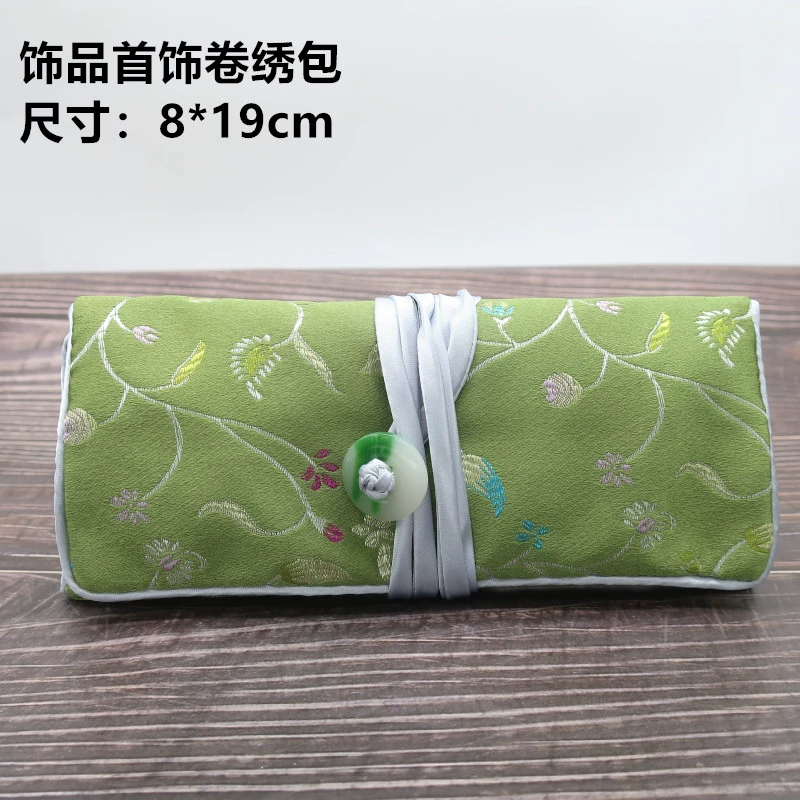 Chinese style play double layer jewelry rolled embroidered bag brocade bag