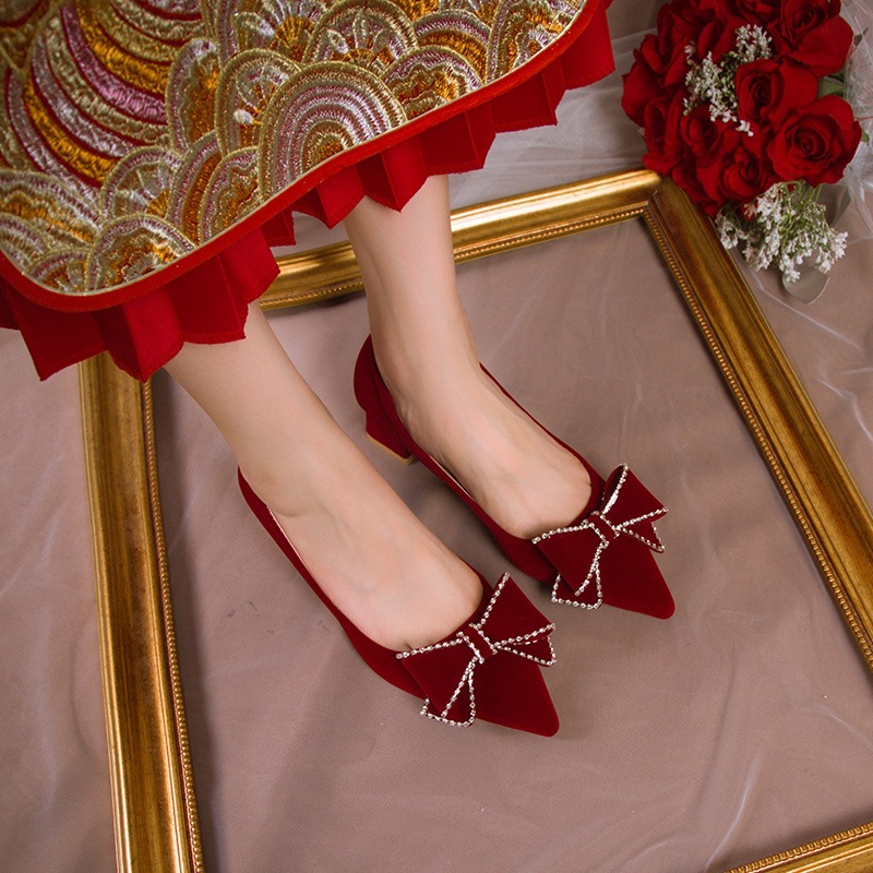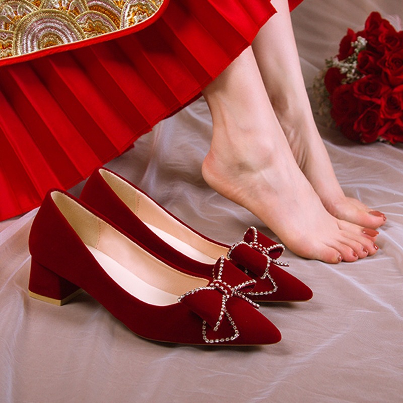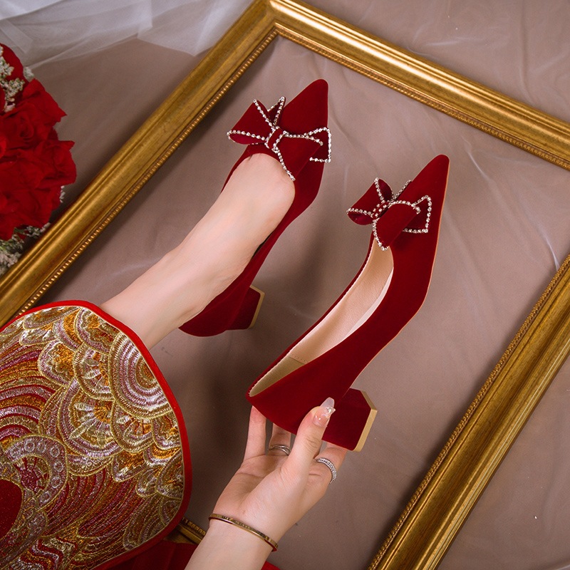 | nameOriginal | Chinese-style red high heels women's wedding square heel engagement shoes chunky heel bridal shoes not tired feet Xiuhe dress wedding dress dual-use |