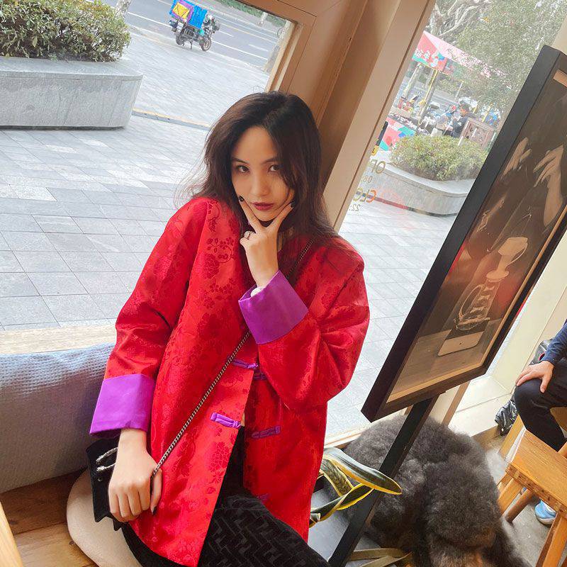 | nameOriginal | Chinese style red jacquard daily Tang suit cheongsam coat Loose Women's Spring and Autumn retro improved buckle top |