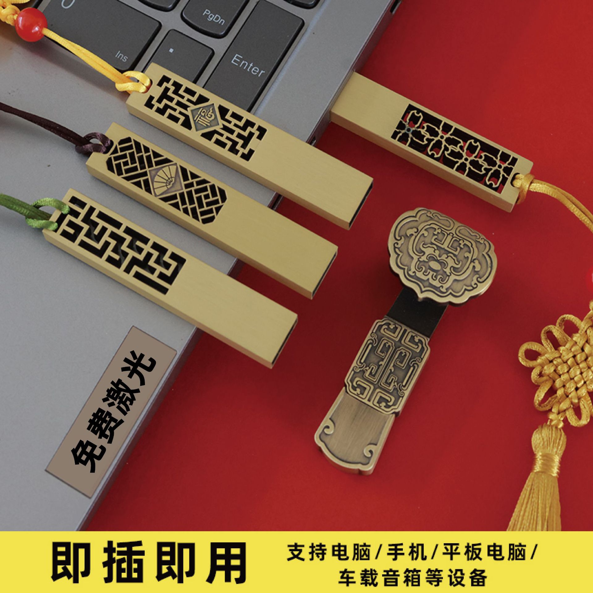 | nameOriginal | Chinese style retro brass antique U disk four-leaf clover copper money Ruyi exhibition gift wedding U disk 8g lettering logo |