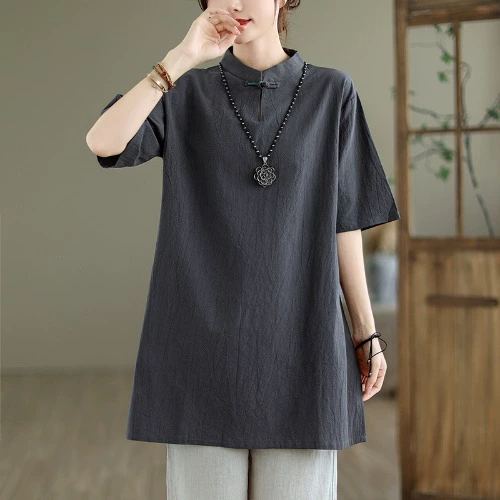 | nameOriginal | Chinese style retro stand collar loose linen plate button embroidery |
