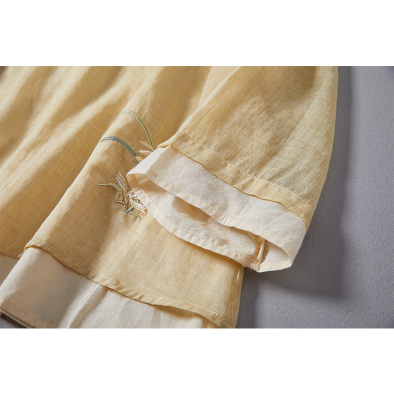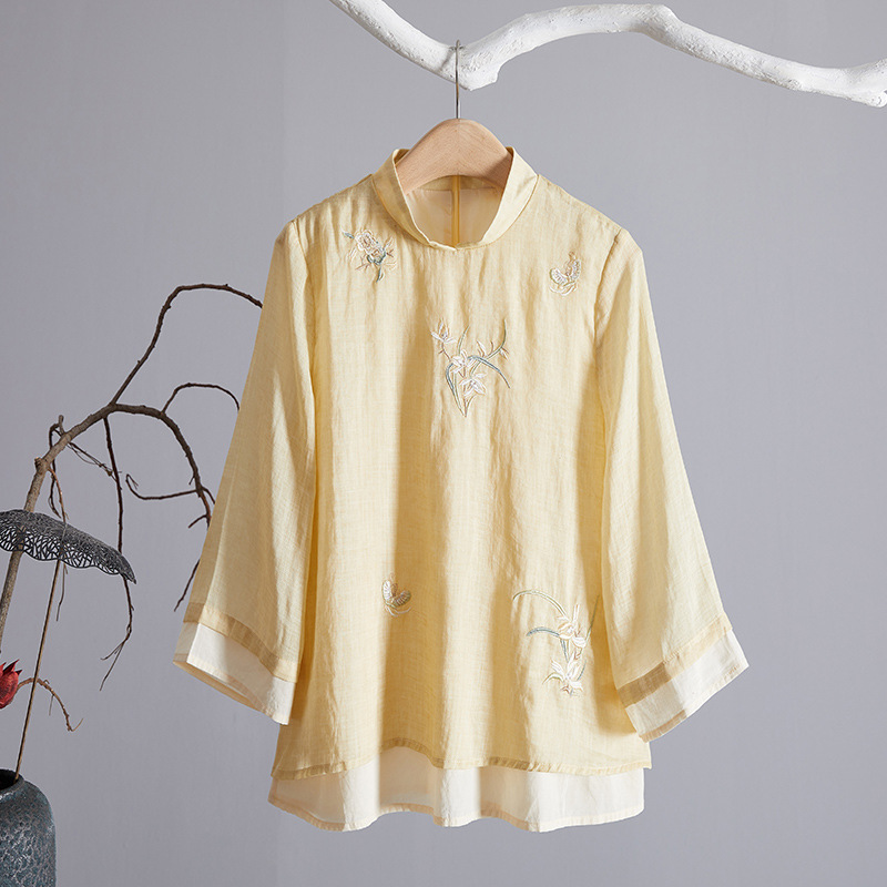 | nameOriginal | Chinese Style Tea Clothing Women's Summer Suit Zen Style Artistic Chinese Style Improved Buckle Tang Suit High-end Embroidered Ramie Top |