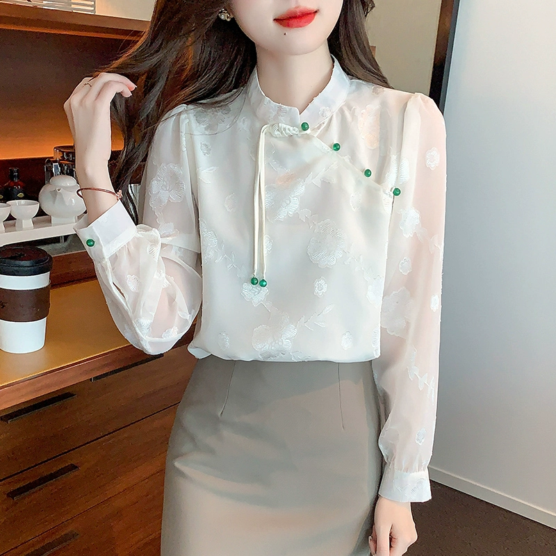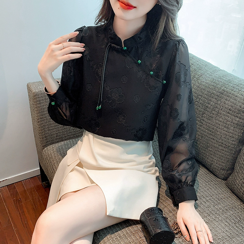 | nameOriginal | Chinese style three-quarter sleeve retro buttoned women's chiffon shirt |