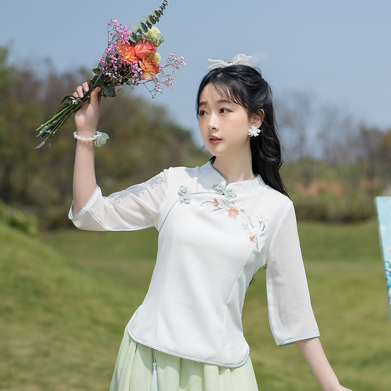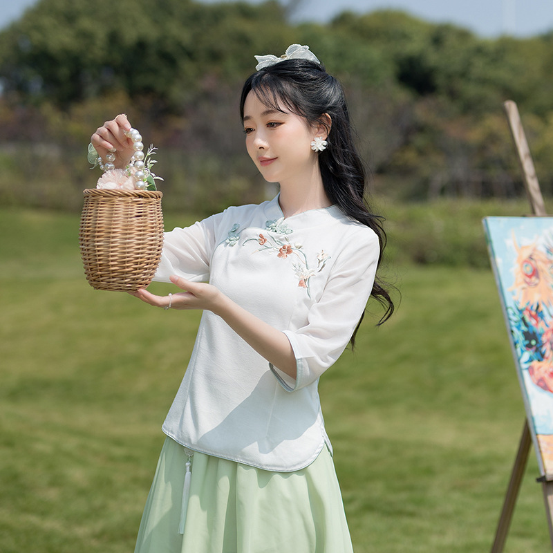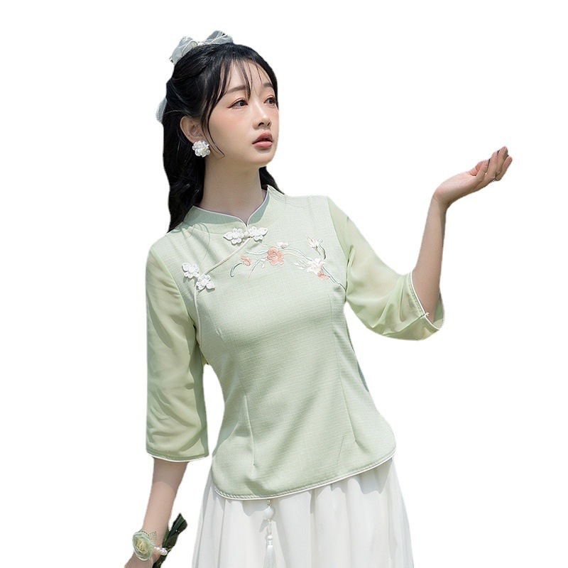 | nameOriginal | Chinese style women's clothing Daily improved Hanfu Women's Chinese Tang suit top two-piece ethnic style suit tea art tea clothes |