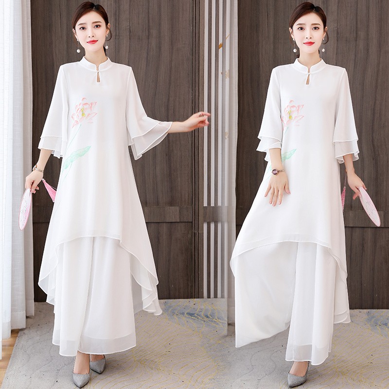 | nameOriginal | Chinese Style Women's Clothing Fairy White Zen Tea Dress Long Dress Improved Hanfu Zen Dress Chiffon Dress Two-piece Set |