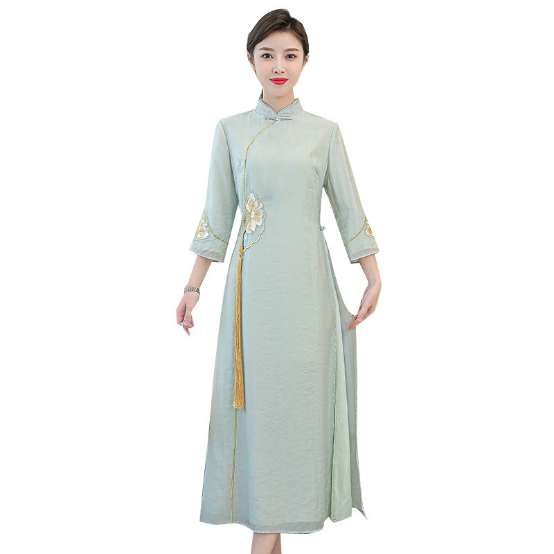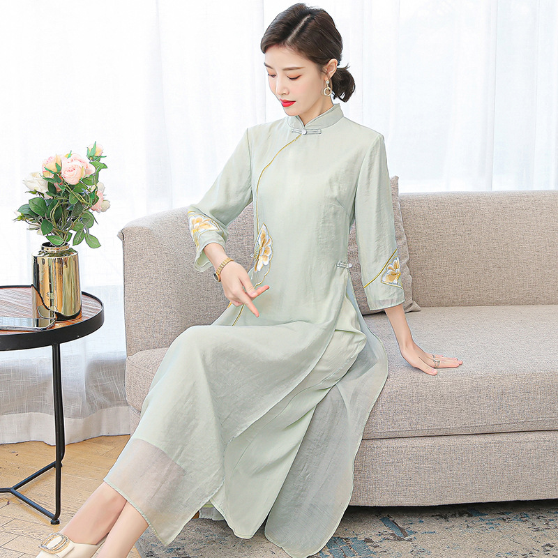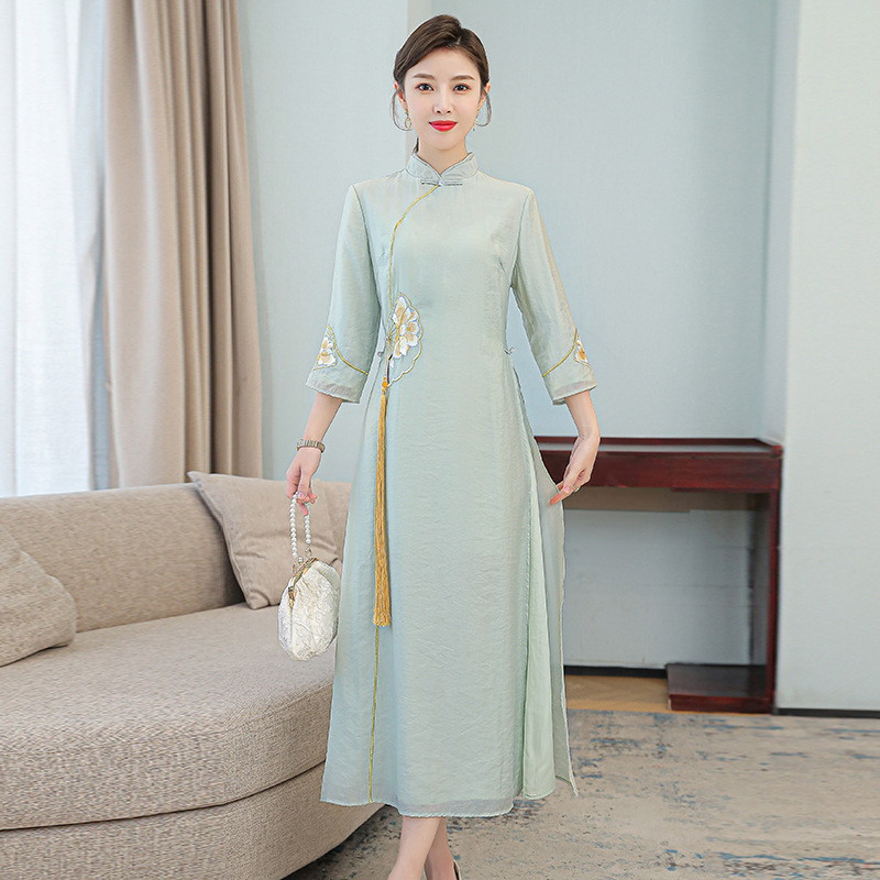 Chinese Style Women's Tang Suit 2023 New Spring Tea Suit Retro Daily Ethnic Style Dress Improved Cheongsam