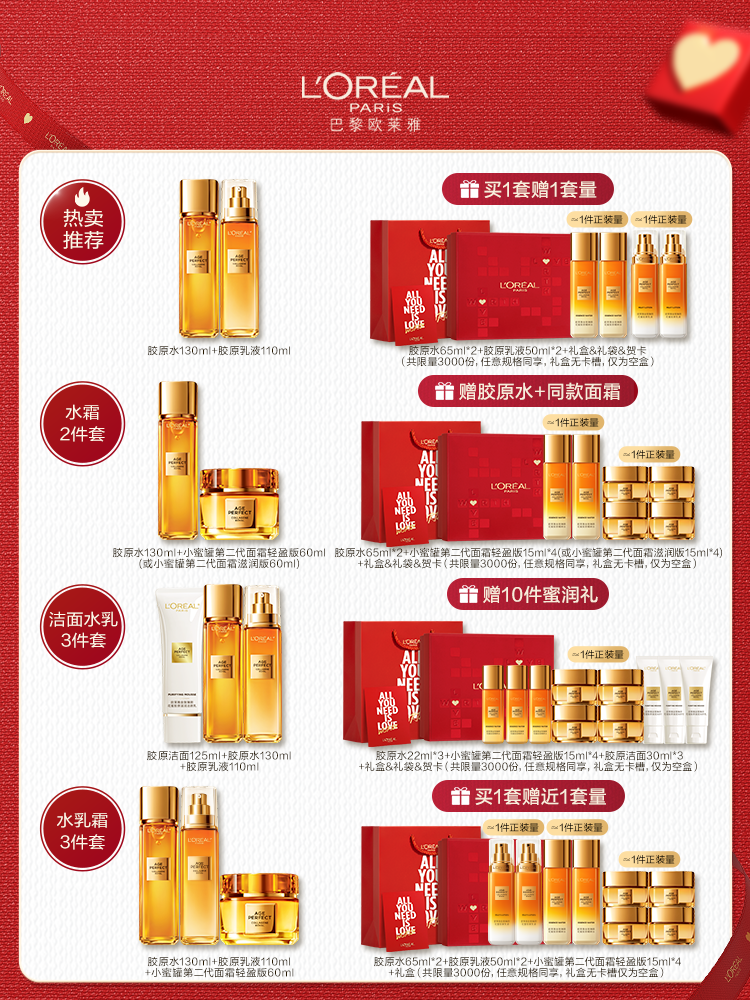 | nameOriginal | [Chinese Valentine's Day Gift] L'Oreal Little Honey Pot Nectar Collagen Water Emulsion Set Gift Box Women's Skin Care Products Firming and Anti-Wrinkle |