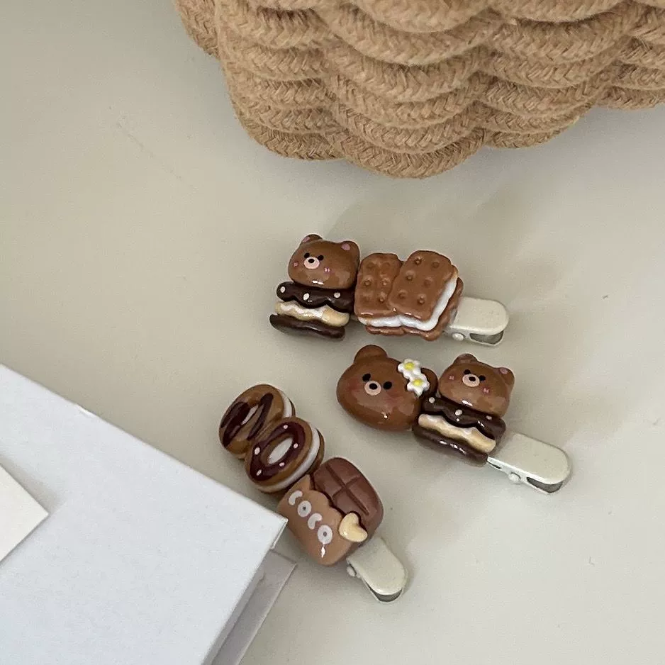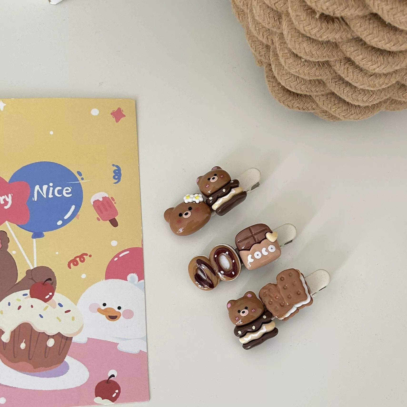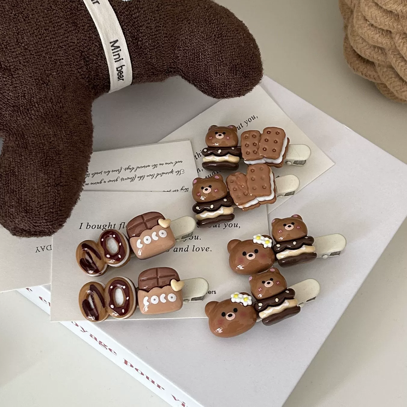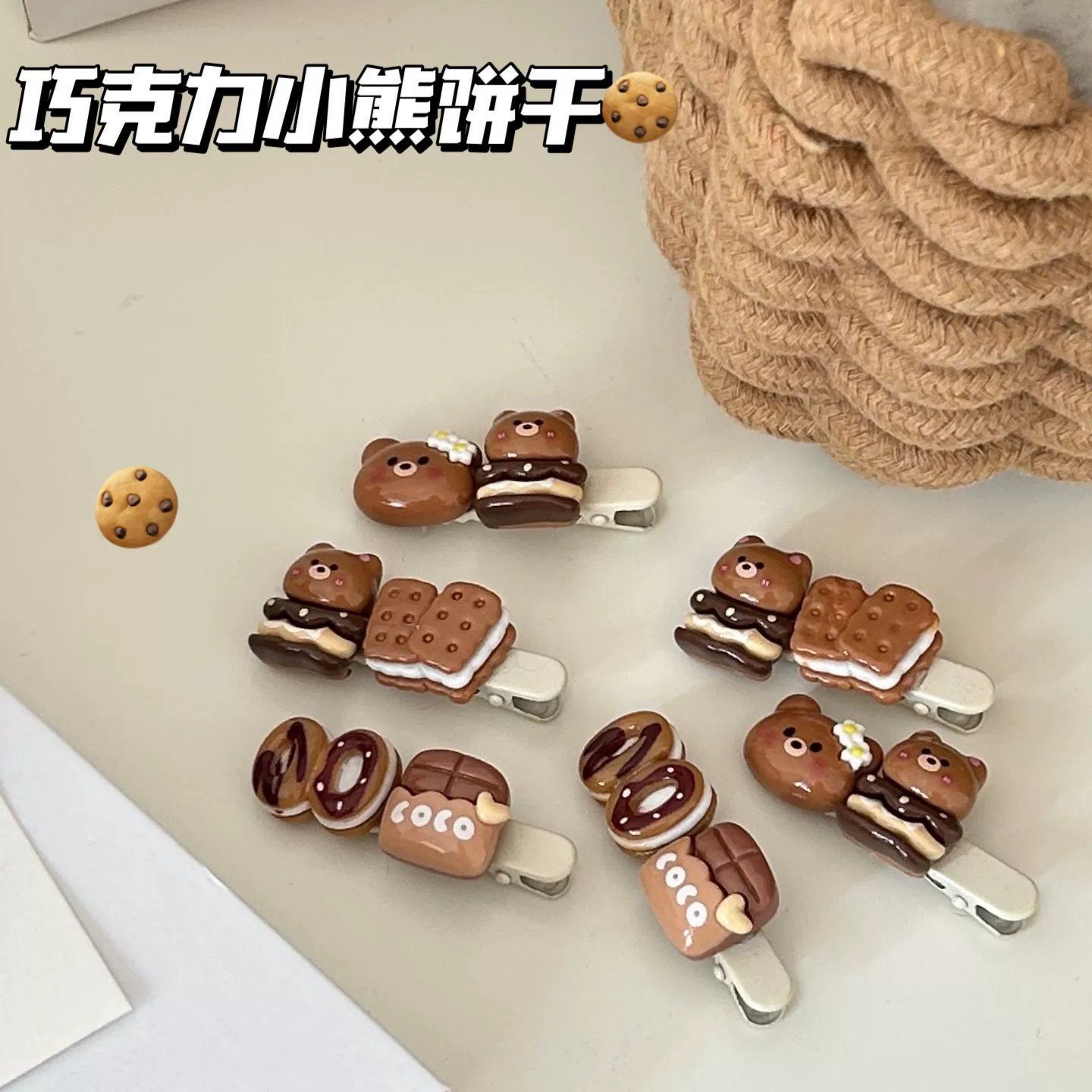Chocolate bear biscuit hairpin ins girly heart simple Mika cartoon cute side clip simulated food toy hair accessory