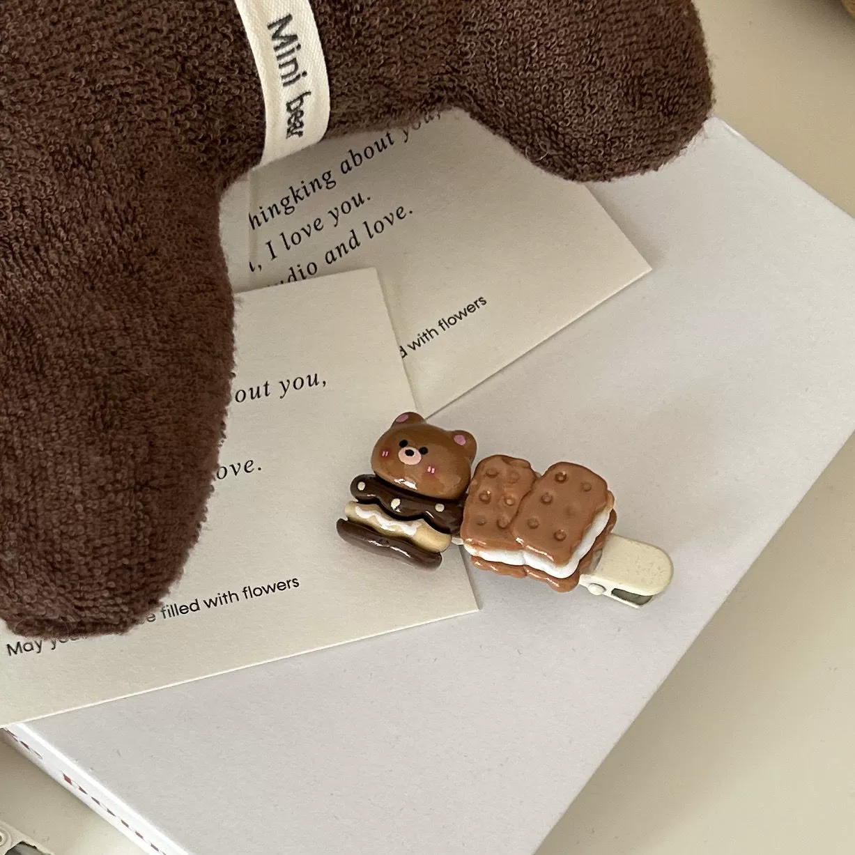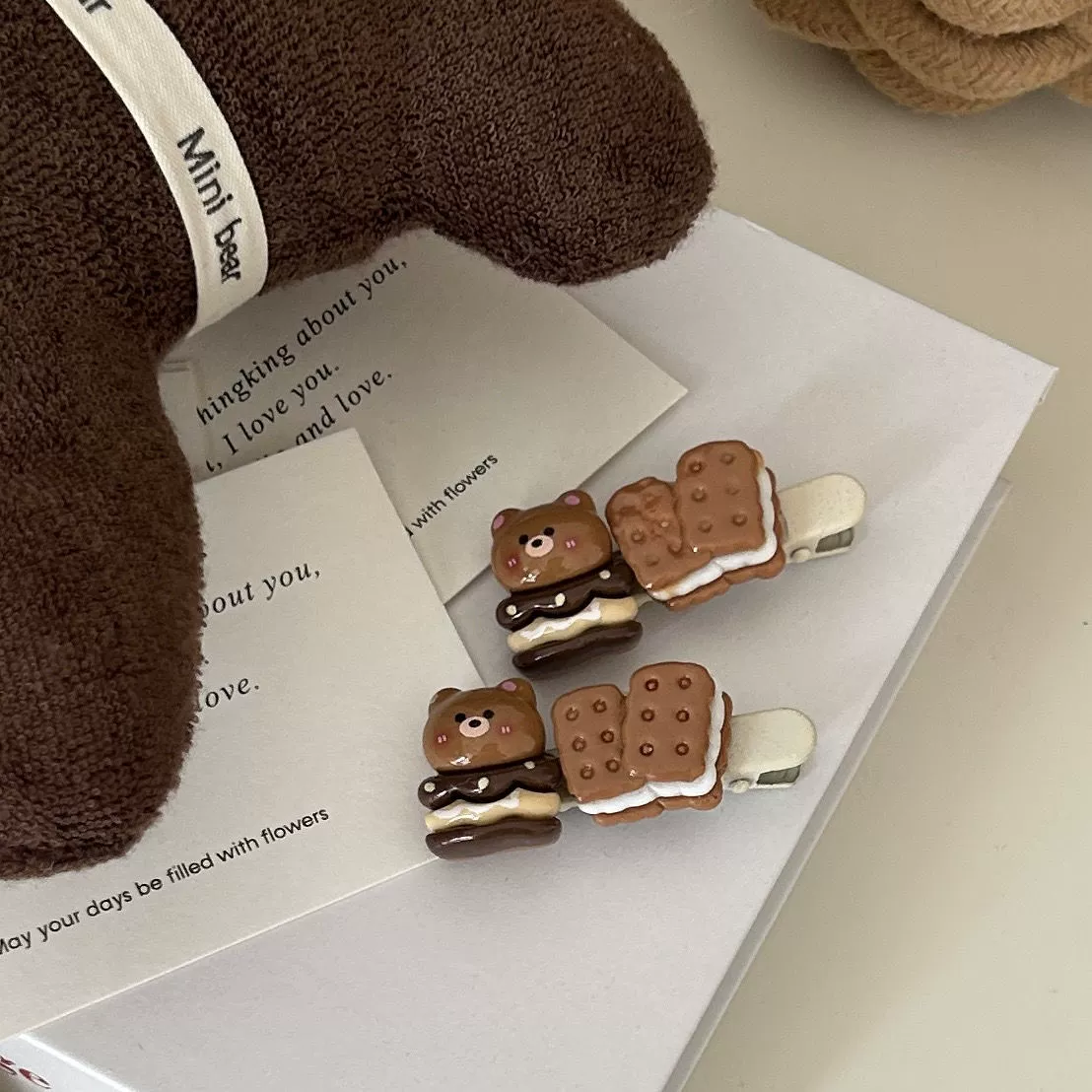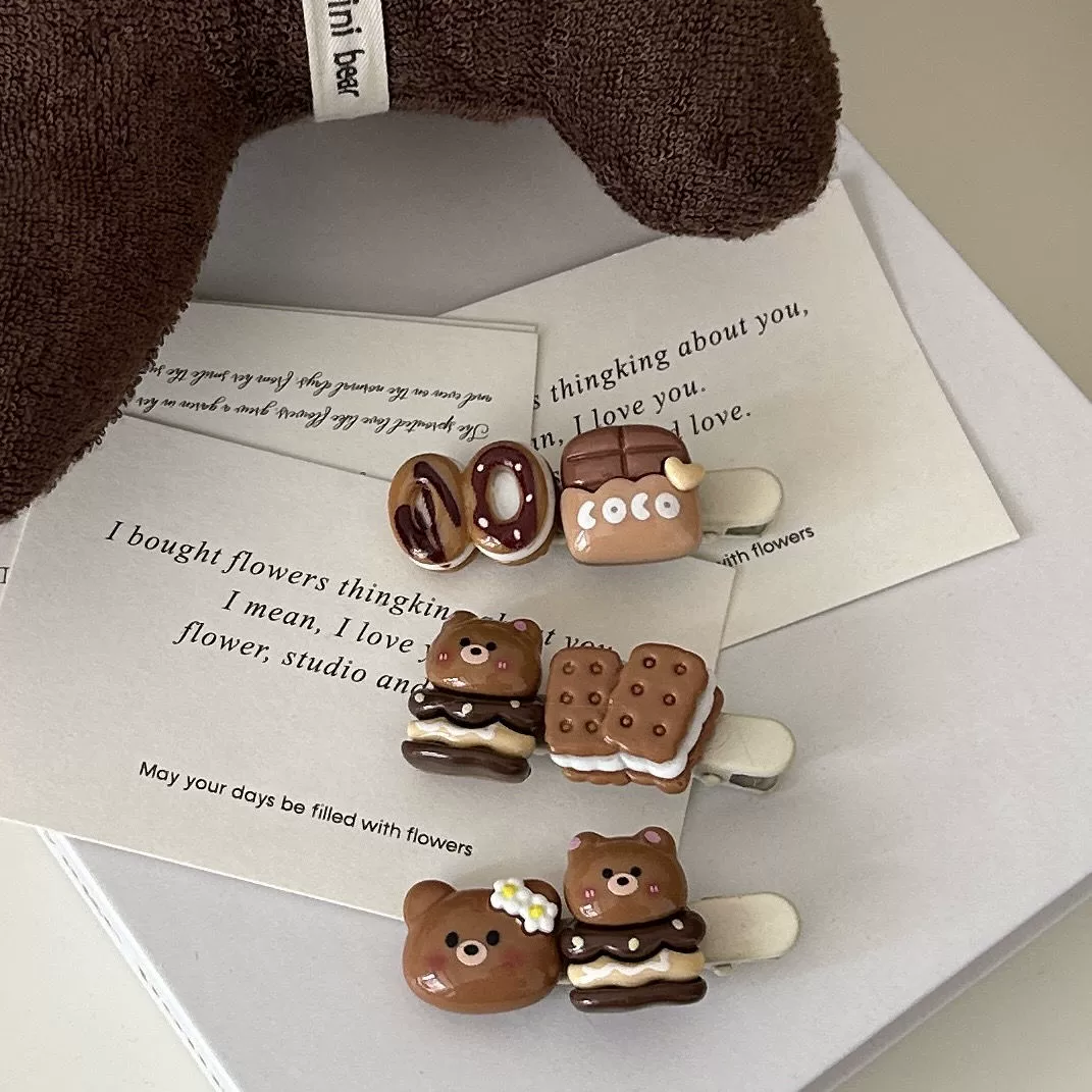 Chocolate bear biscuit hairpin ins girly heart simple Mika cartoon cute side clip simulated food toy hair accessory