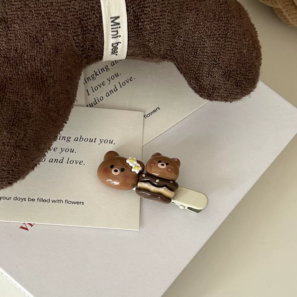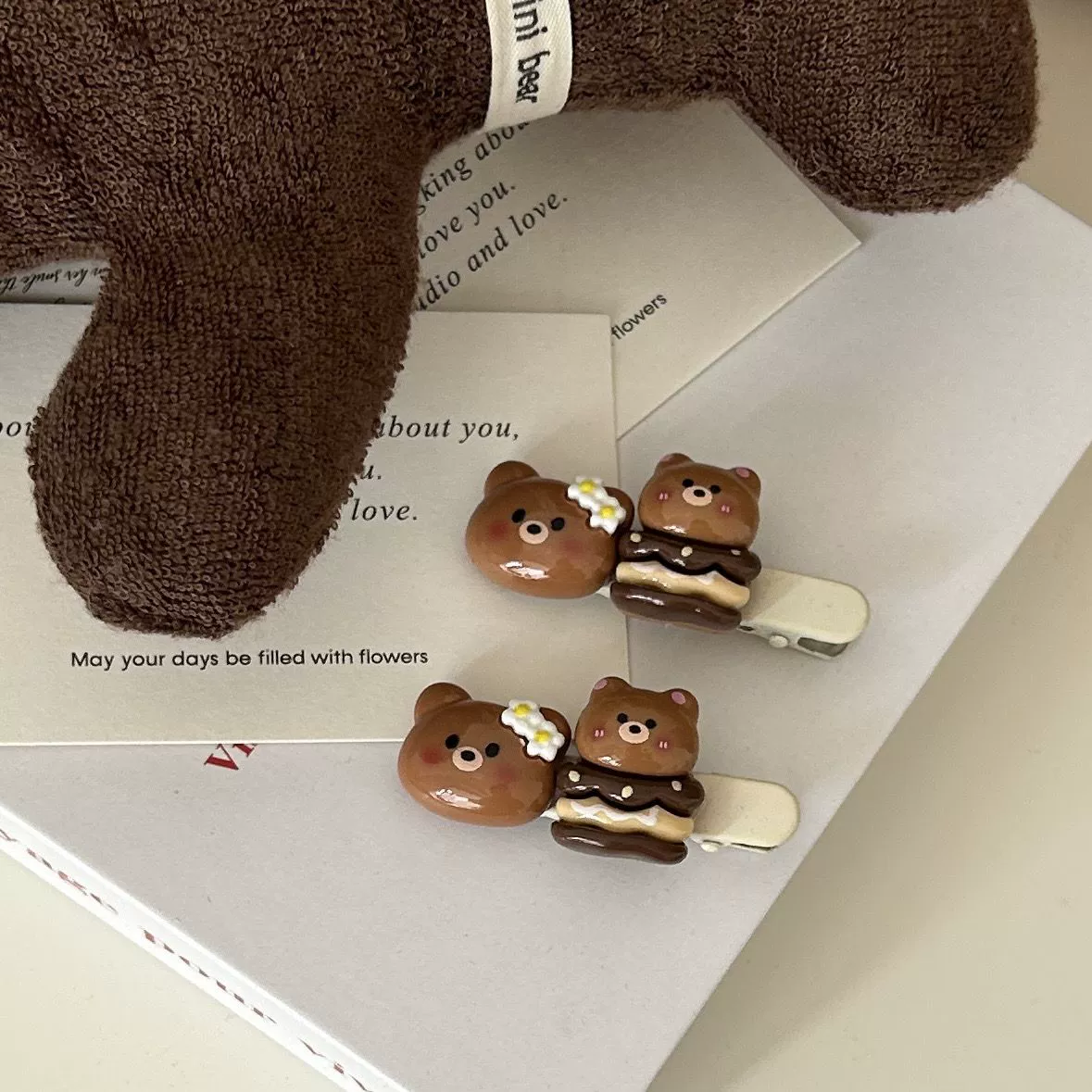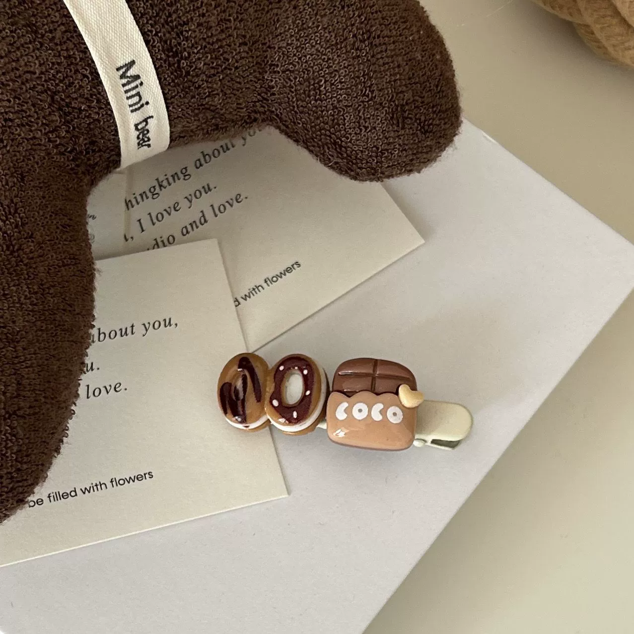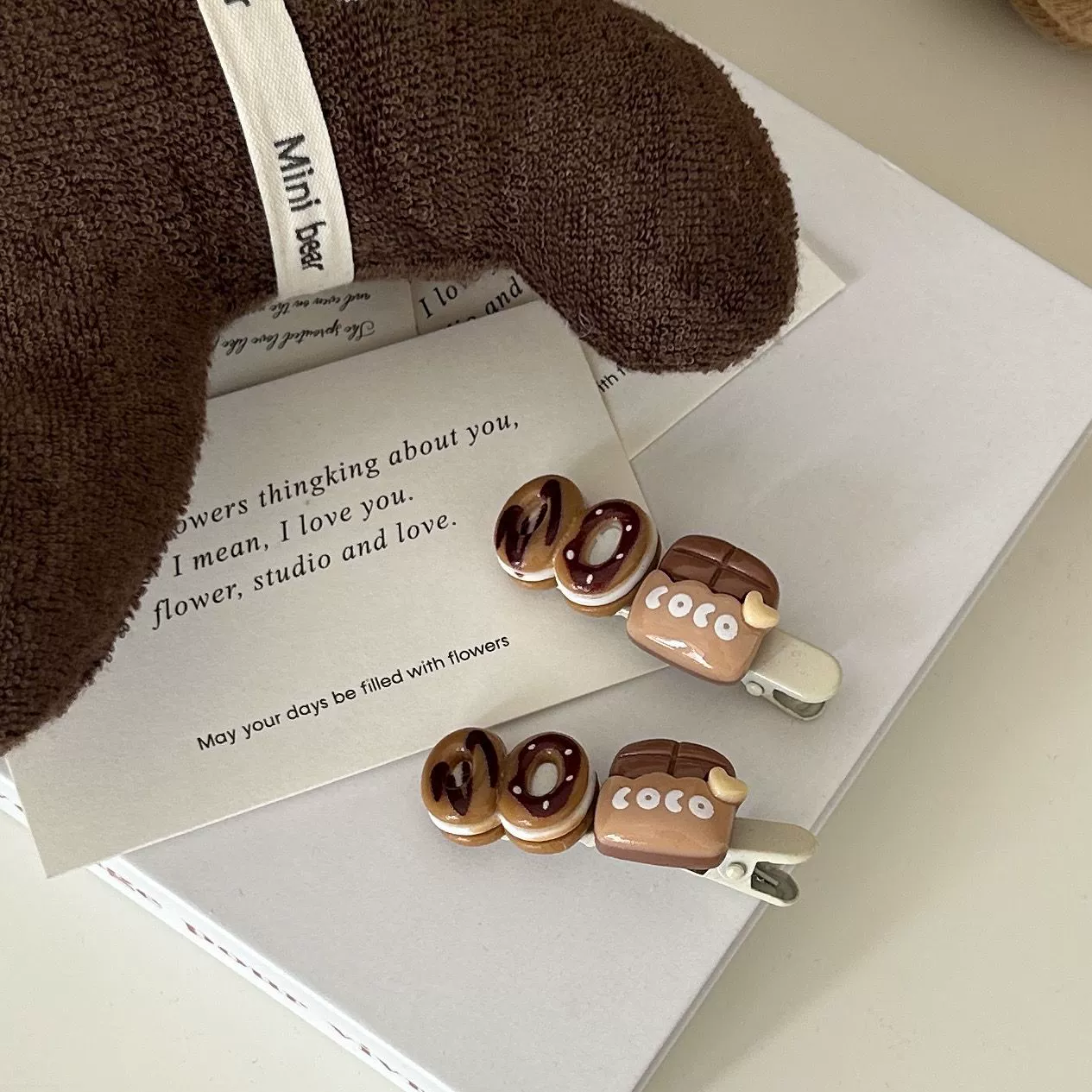 Chocolate bear biscuit hairpin ins girly heart simple Mika cartoon cute side clip simulated food toy hair accessory