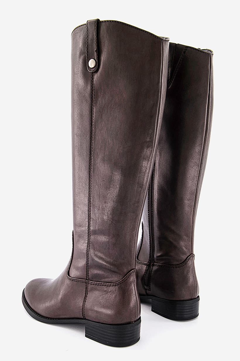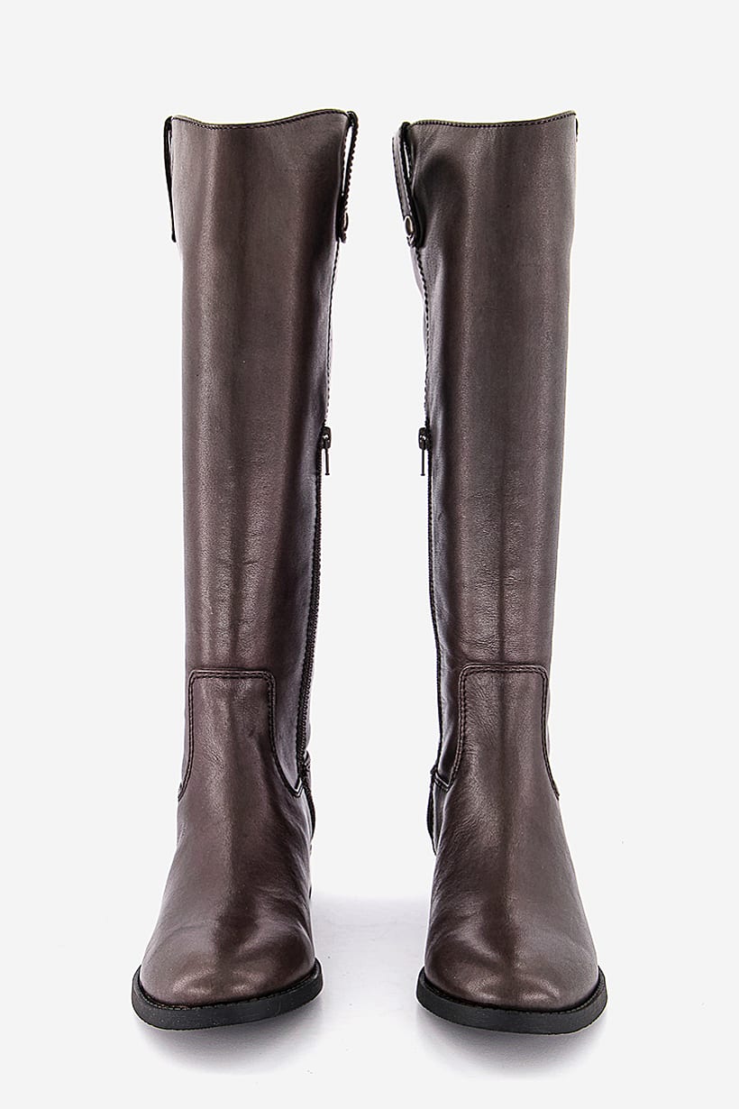 Style : Knee-length boot, Ideal For : Women, Occasion : Casual, Heel Height : 1" / 2.5 cm, Shoe Closure : Zipper closure, Heel Style : Block heel, Toe Style : Round toe, Sole Material : Synthetic sole, Shoe Material : Synthetic Leather, Color Family : Brown, Pattern & Print : Plain/Solid, Shoe Width : Standard,