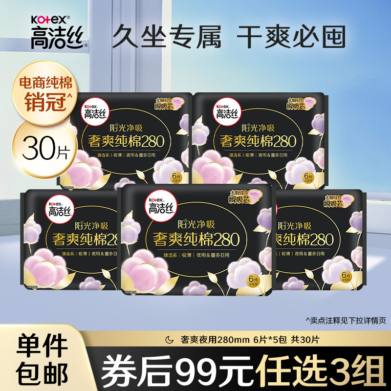 [Choose any 3 sets for 99 yuan] Kotex luxurious pure cotton daily short-night and extra-long night sanitary napkins