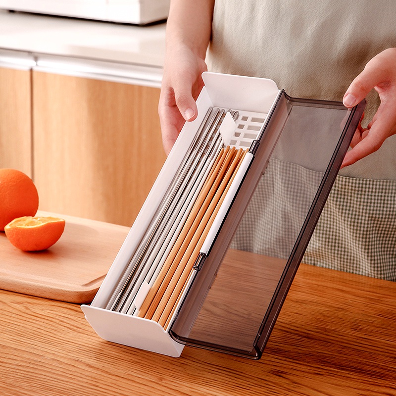 Chopsticks Cage with Lid Dustproof Storage Rack Household Chopsticks Basket Trousers Kitchen Chopsticks Spoon Tableware Draining Storage Box