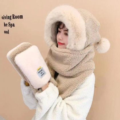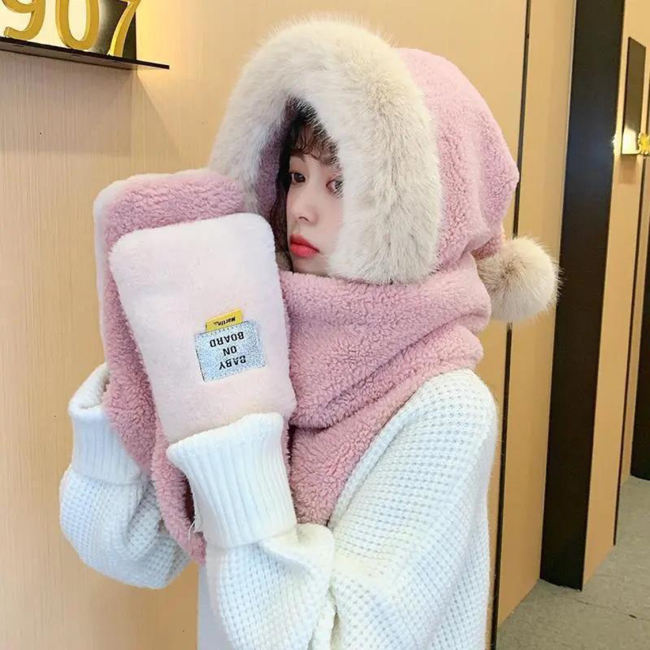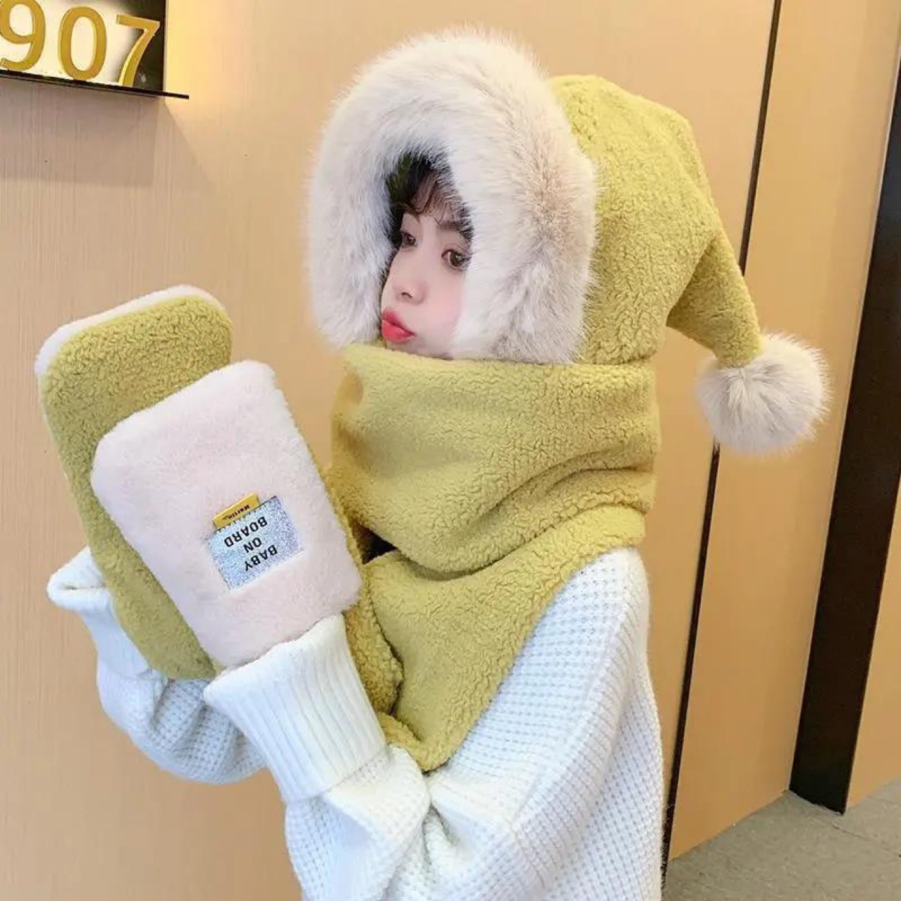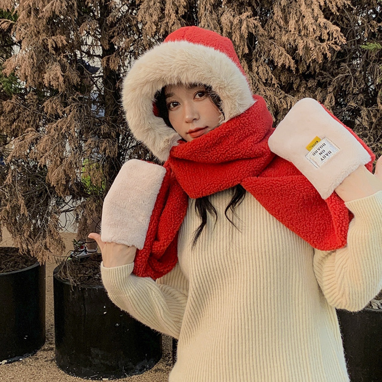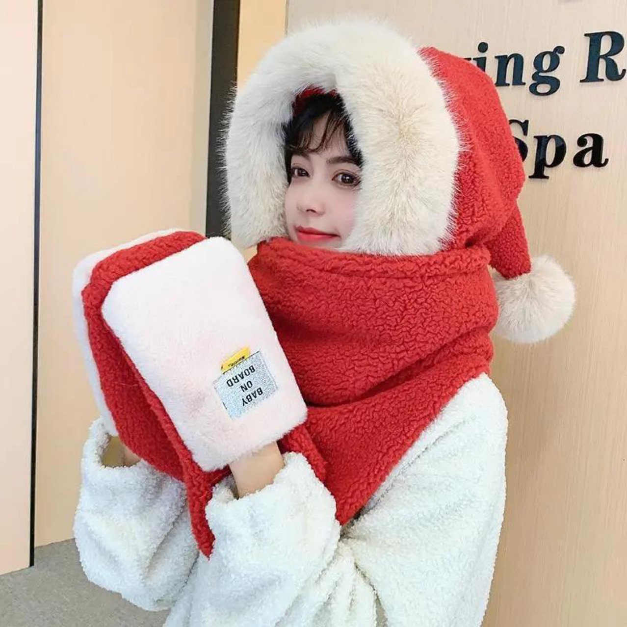 Christmas hat scarf gloves three-in-one winter New thickened warm cute all-match scarf three-piece set