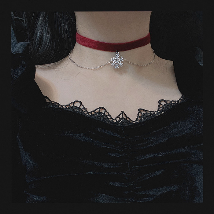| nameOriginal | Christmas style snowflake pendant necklace choker velvet collar short neck strap personalized clavicle chain simple choker |