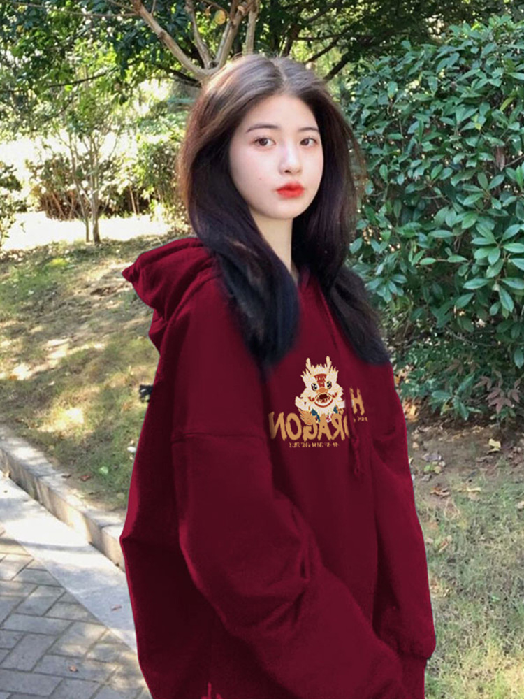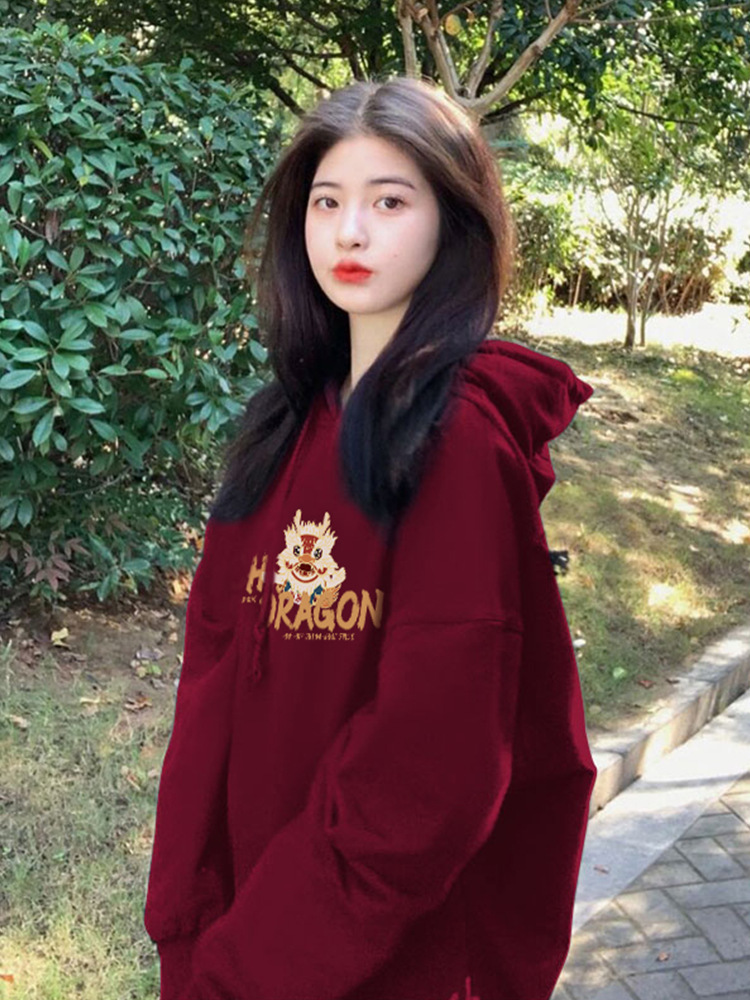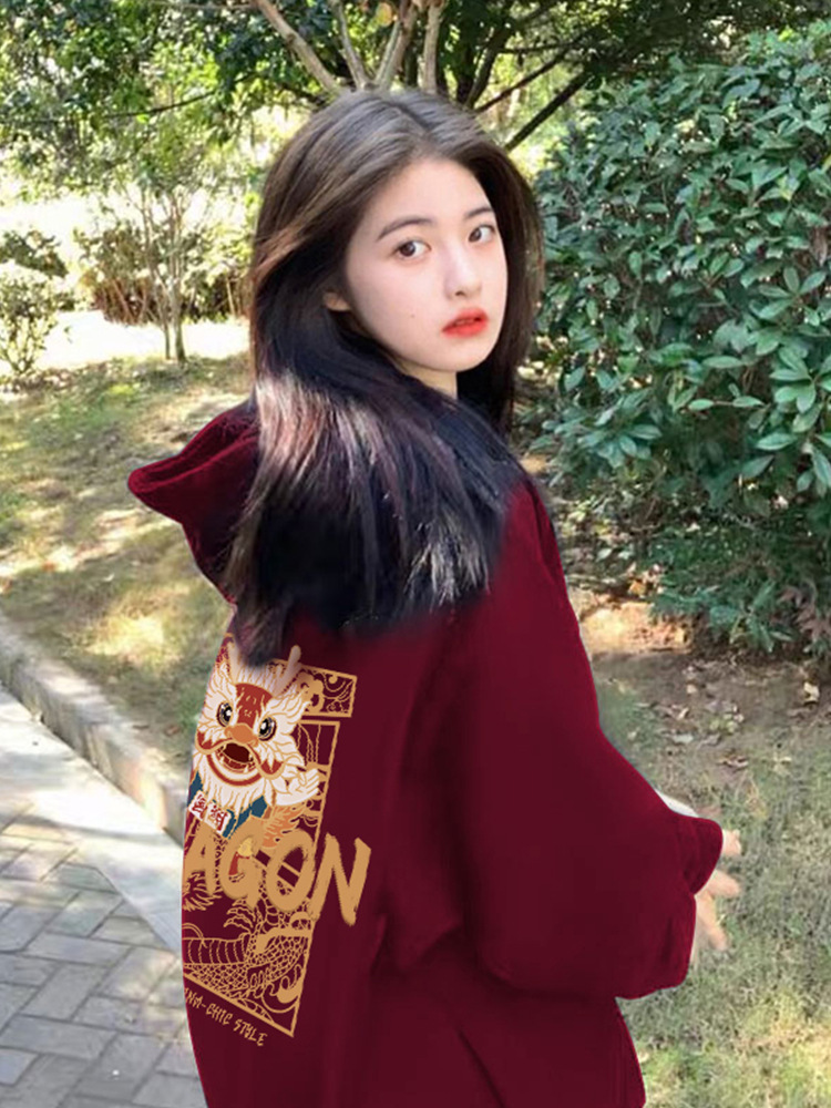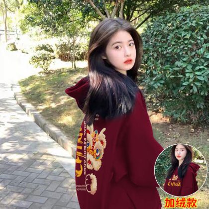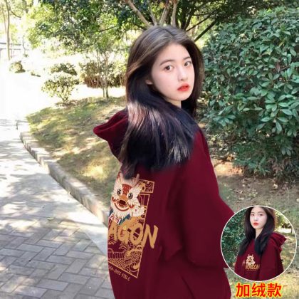 | nameOriginal | Christmas wine red fleece-lined hooded sweater women's 2023 new popular coat Dragon year birth year clothes |