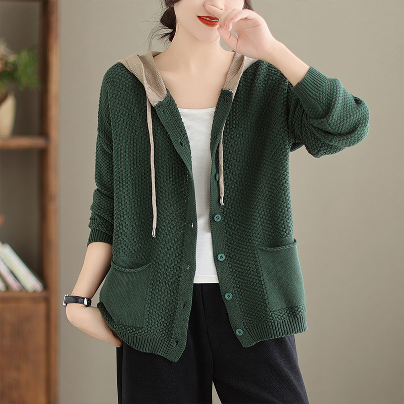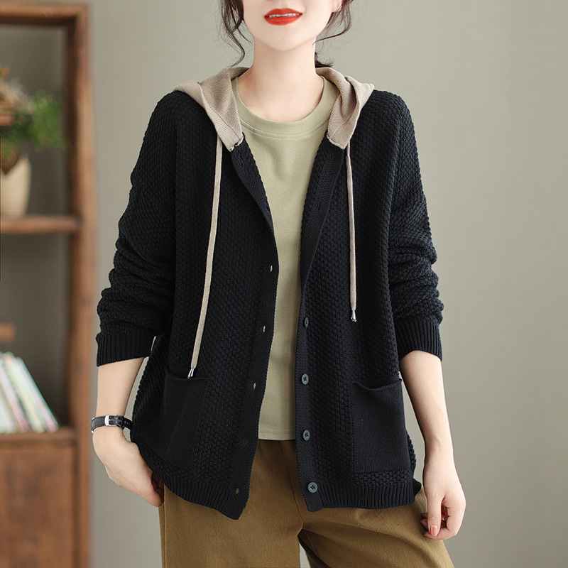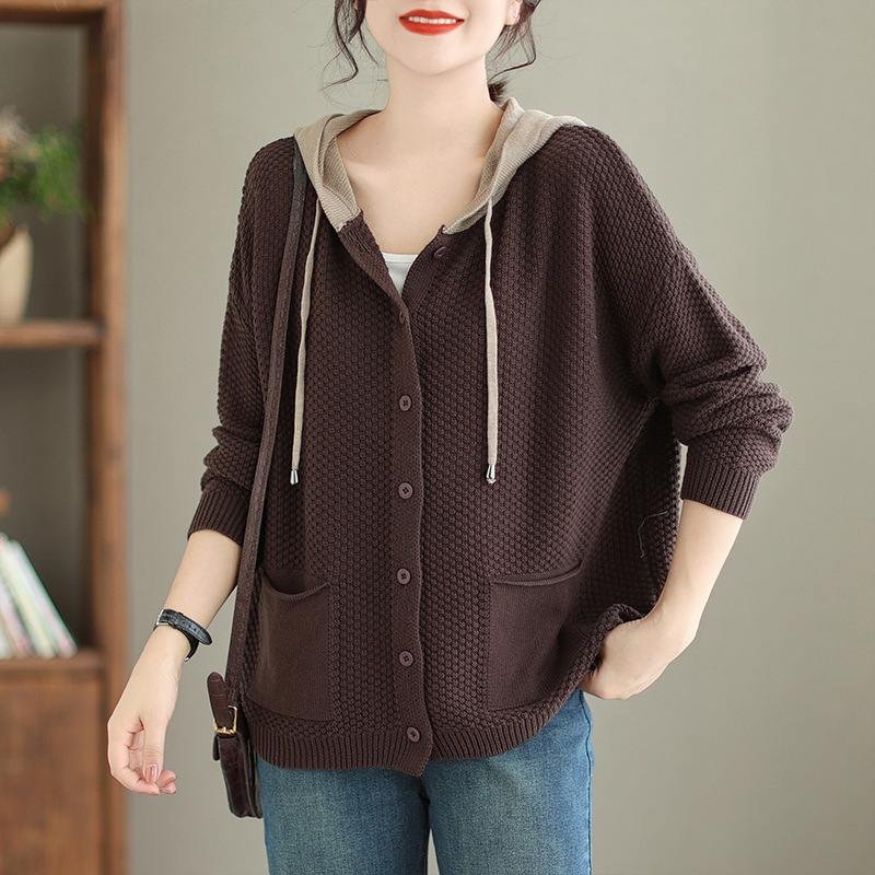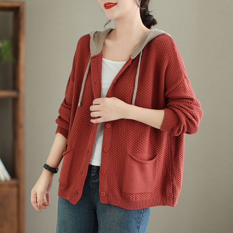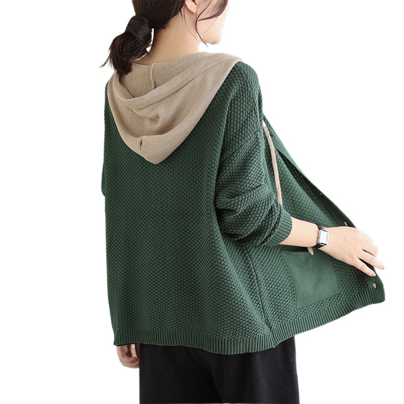 | nameOriginal | Chubby girl plus size contrast color hooded knitted long-sleeved cardigan women's autumn artistic casual age-reducing loose cotton short coat |