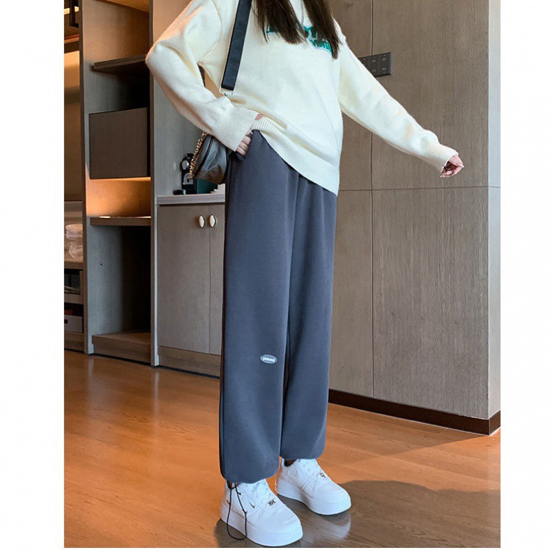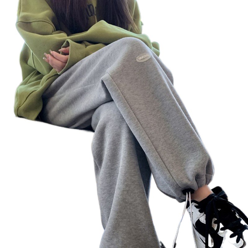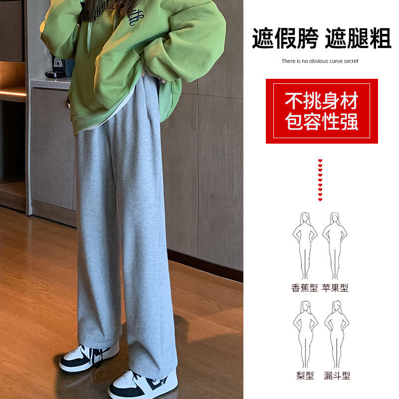 chubby girl plus size gray sports pants women’s casual loose wide leg straight tube toe high waist plus fat women’s clothing 200kg