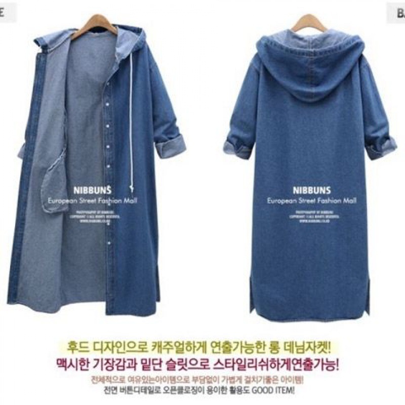 | nameOriginal | Chubby Girl plus size loose Denim coat Women's Spring and Autumn long sleeve hooded Denim cardigan mid-length BF women's trench coat |