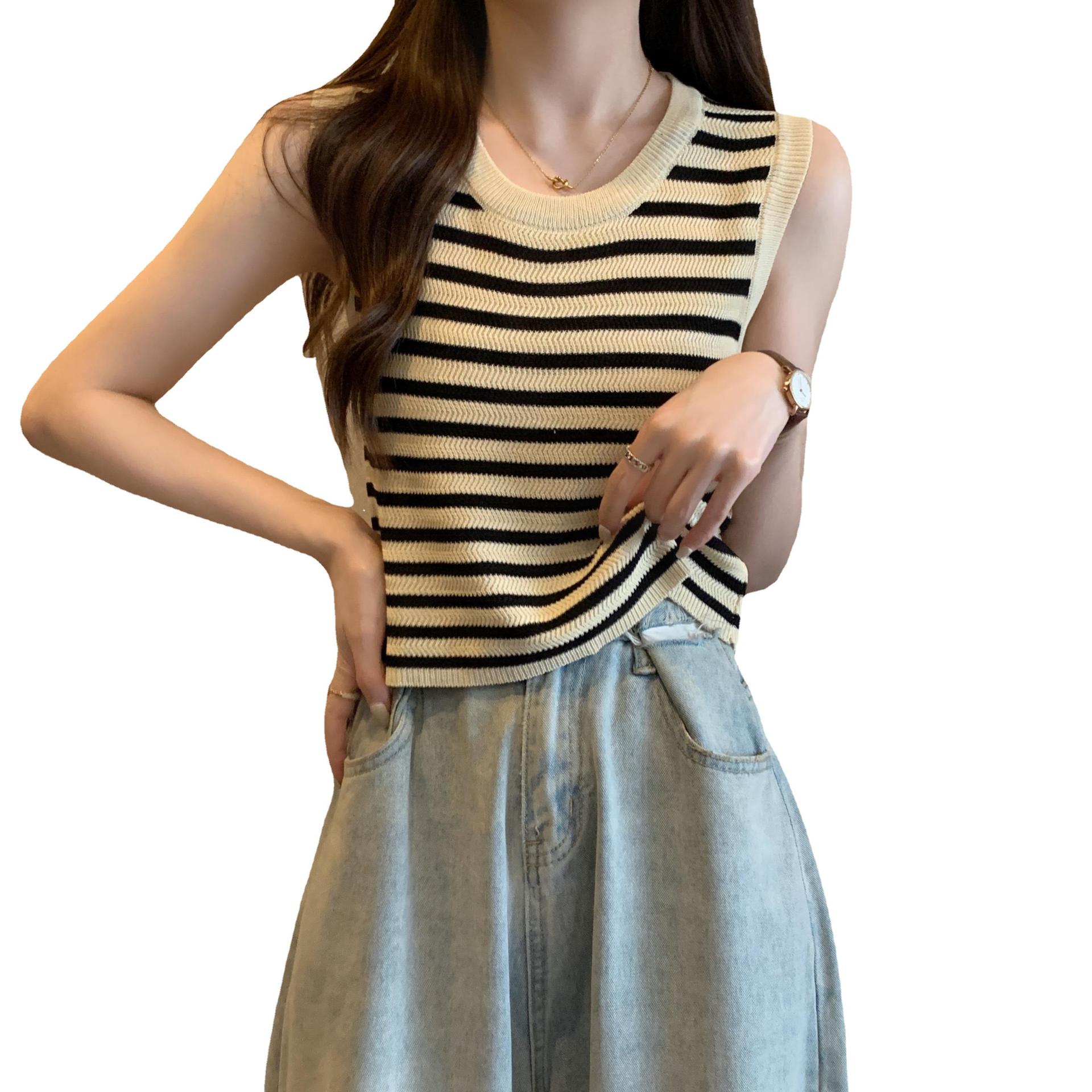 | nameOriginal | chubby girl plus size Striped Camisole Women's Summer Slimming Outer Wear Sleeveless Knitted Casual Top |