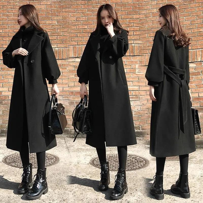 chubby girl plus size woolen coat women 200kg long knee 2021 winter new slim tide woolen coat