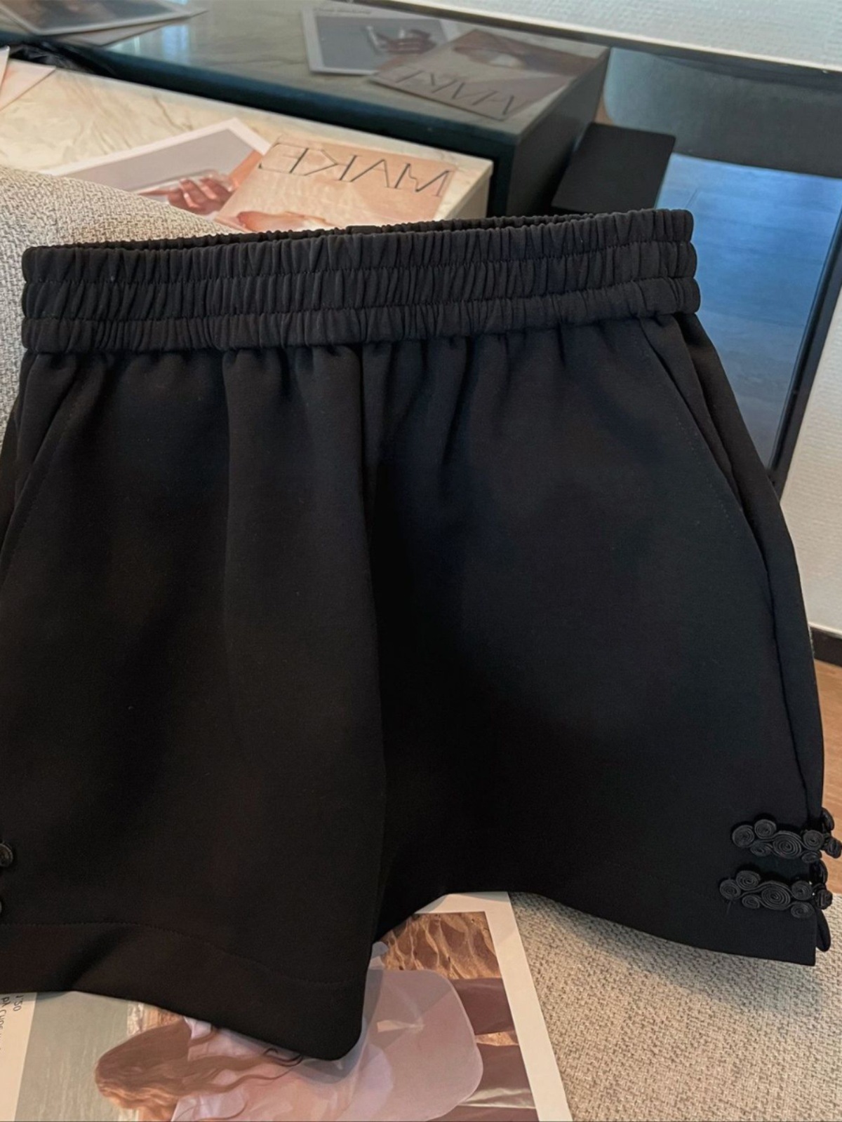 | nameOriginal | Chubby Girl Summer New Chinese-style Buckle Casual Hot Pants Plus Size Loose Slimming Black Guofeng High Waist Shorts for Women |
